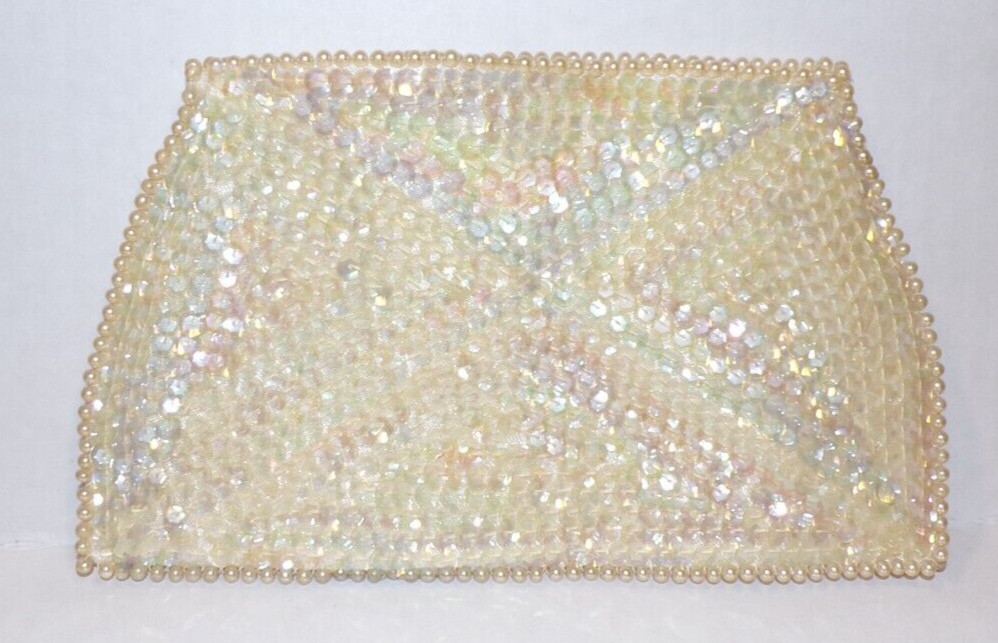 La Regale Beaded Ivory Clutch Purse Satin Pearls Sequin Art Deco Evening Bag VTG