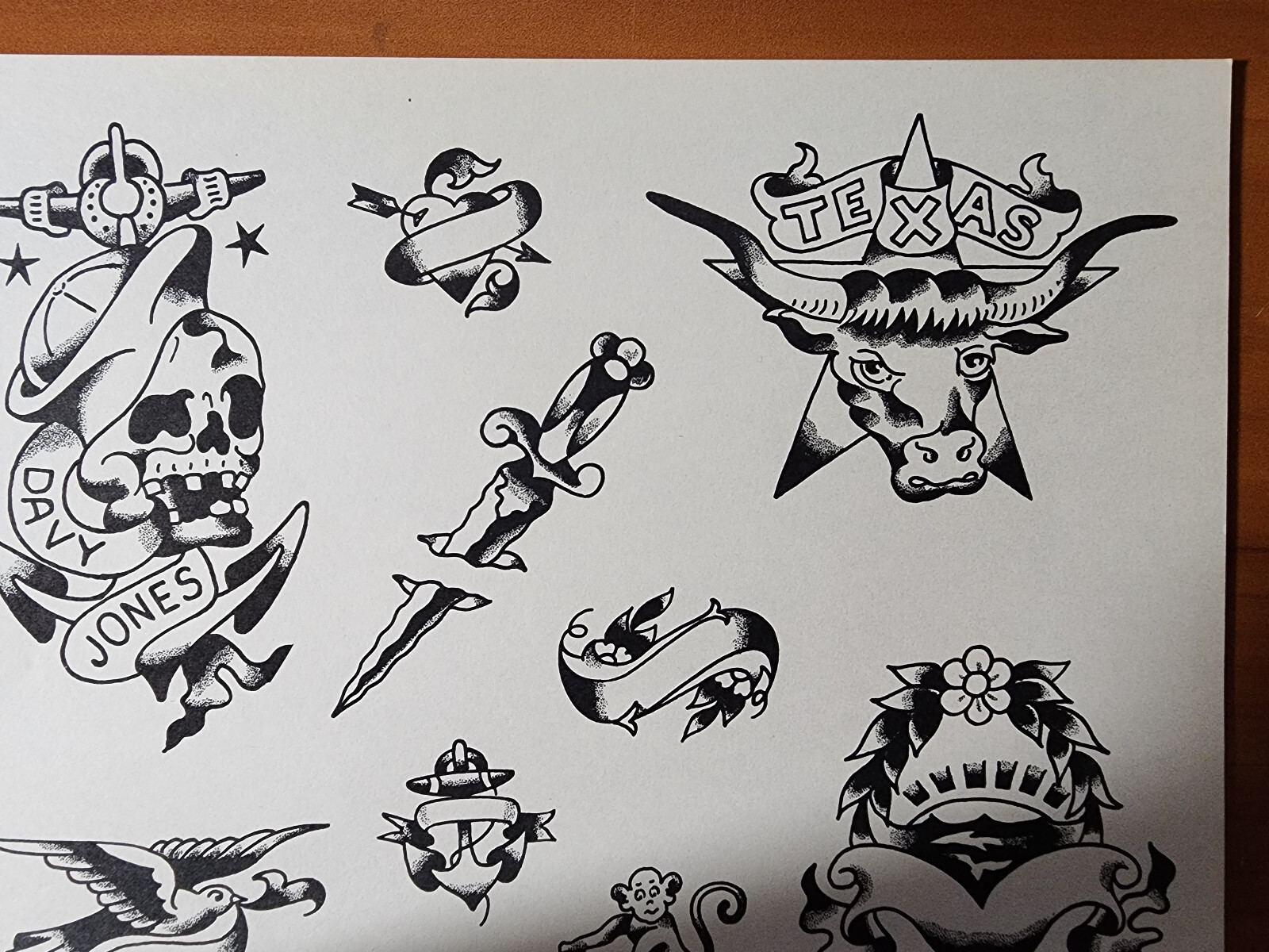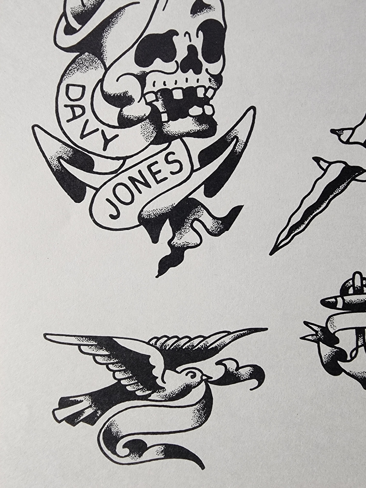 RARE Milton Zeis Traditional Vintage Tattoo Flash Sheet Davy Jones, Texas NOS