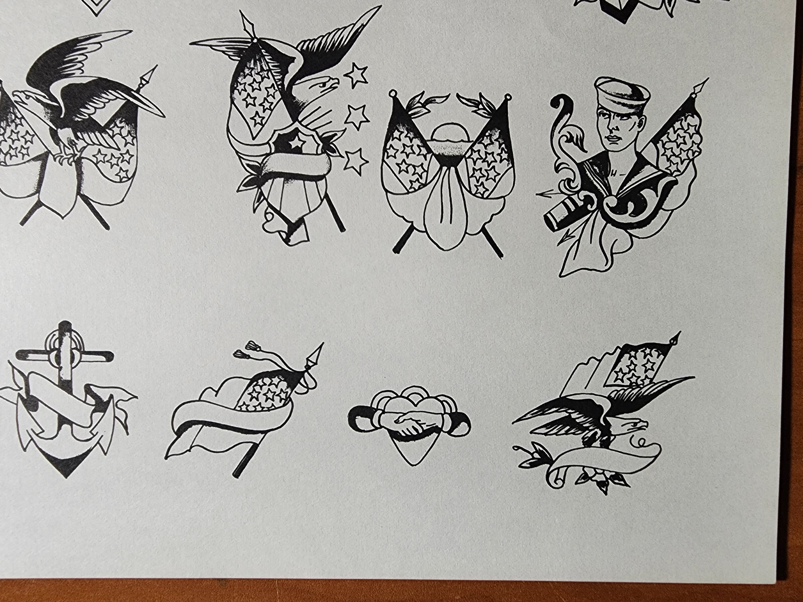 RARE 1950's Ralph Johnstone Milton Zeis Traditional Vintage Tattoo Flash Sheet D