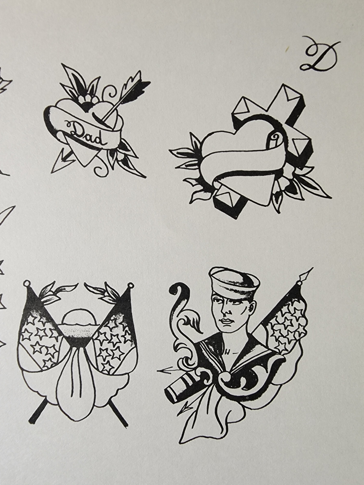 как выглядит RARE 1950s Ralph Johnstone Milton Zeis Traditional Vintage Tattoo Flash Sheet D фото