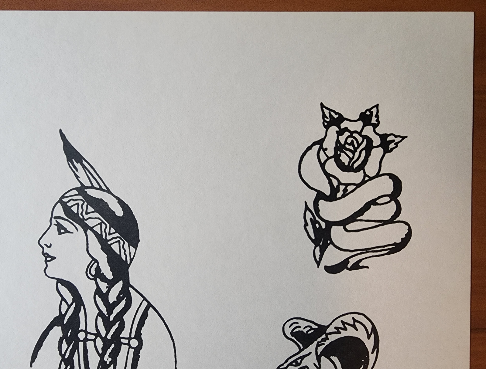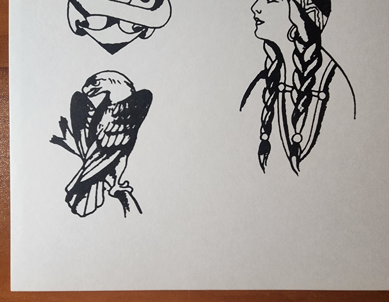 как выглядит RARE 1950s Ralph Johnstone Milton Zeis Traditional Vintage Tattoo Flash Sheet 7 фото