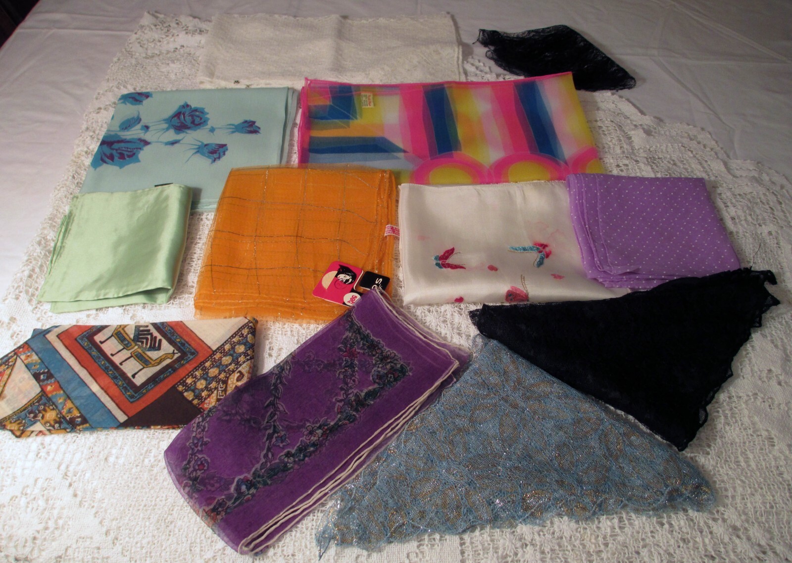 как выглядит VTG LADIES SCARFS LOT 13 HEAD, NECK, TRIANGLE, SQUARE, JAPAN, VERA, READ BELOW фото