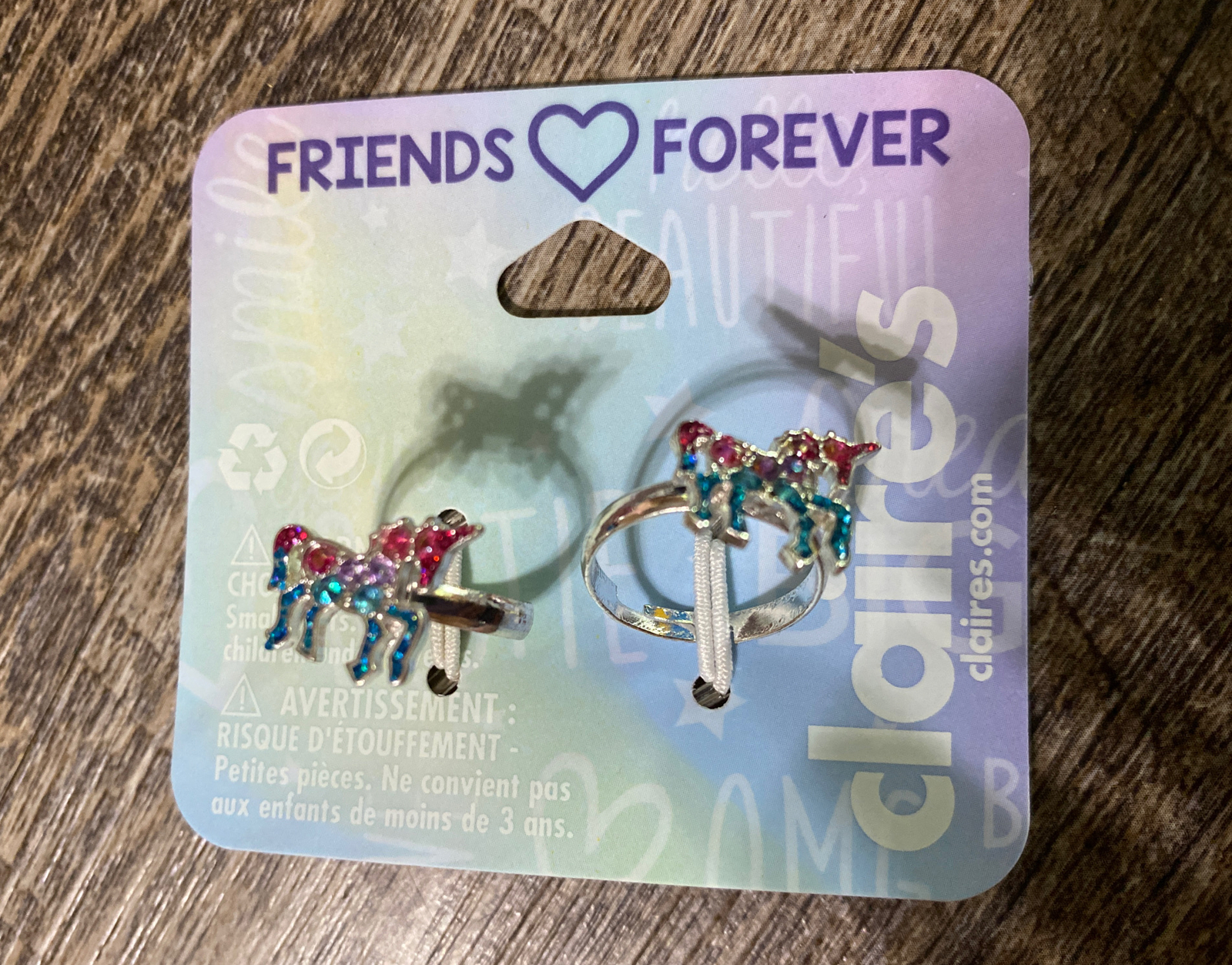 Claire s Glitter Rainbow Unicorn BFF Best Friends Adjustable Ring Set Nwt