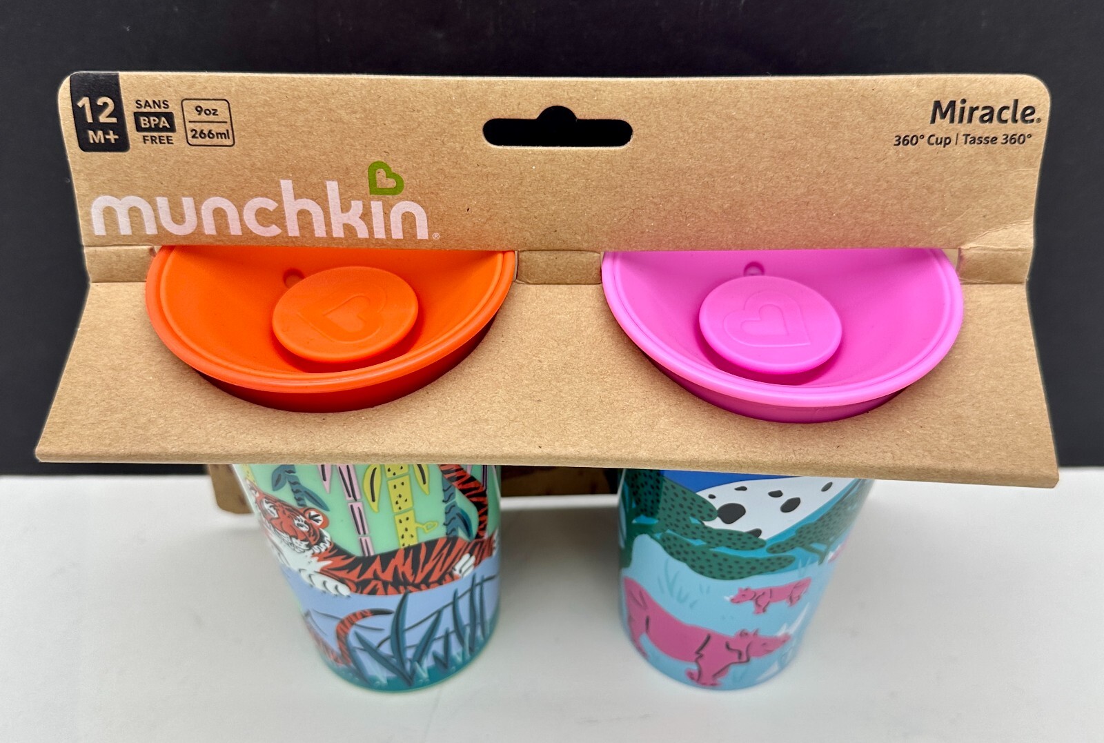 Munchkin Miracle 360 Wildove Sippy Cup 9oz 2-Pack Tiger / Rhino 12m