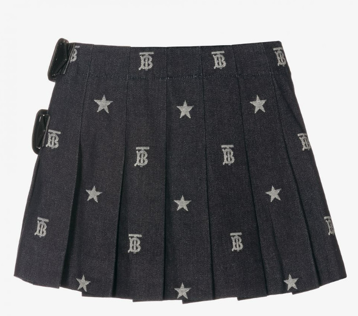 как выглядит Burberry Girls Indigo Star And Monogram Motif Japanese Denim Skirt size 3 4 8 фото
