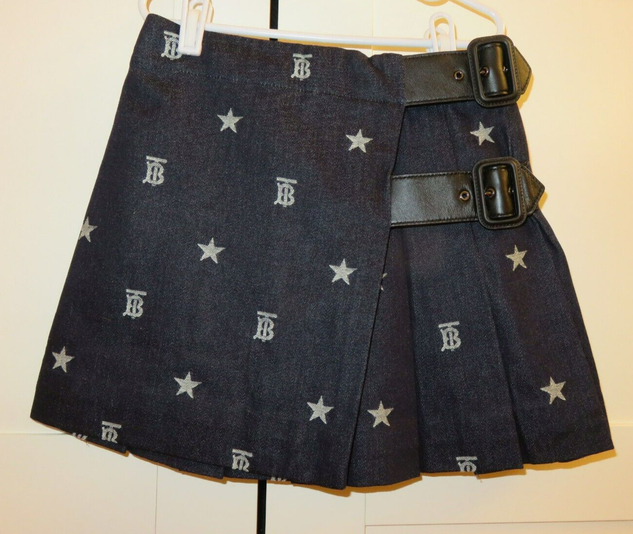 Burberry Girls Indigo Star And Monogram Motif Japanese Denim Skirt size 3 4 8