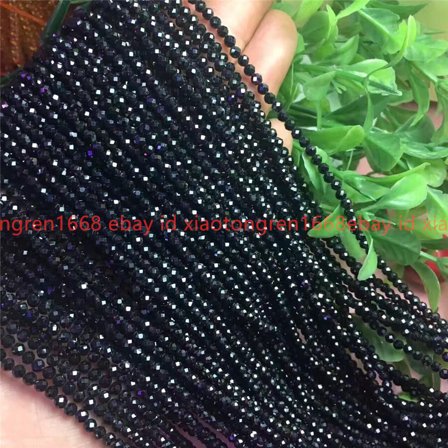 как выглядит Wholesale 5 Strands Faceted 3mm Bright Black Spinel Round Gems Loose Beads 15 фото
