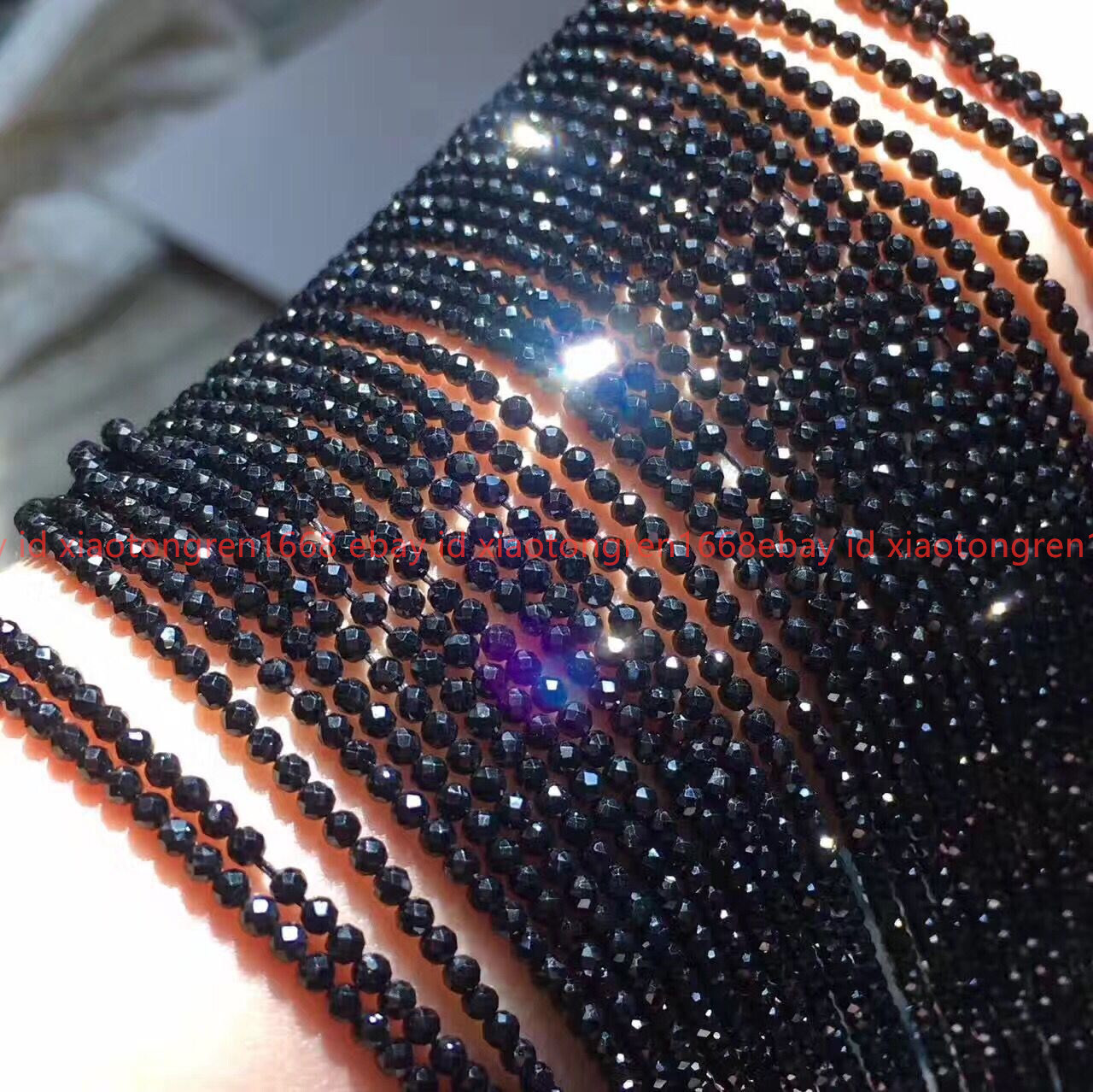 как выглядит Wholesale 5 Strands Faceted 3mm Bright Black Spinel Round Gems Loose Beads 15
