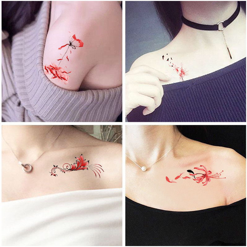 30Pcs Water Transfer Temporary Body Arm Tattoos Red Flowers Floral Stickers ML