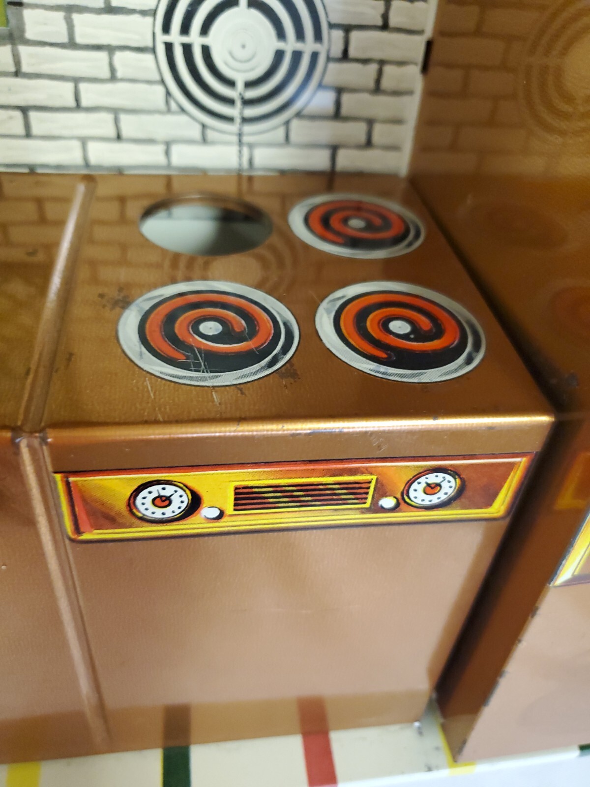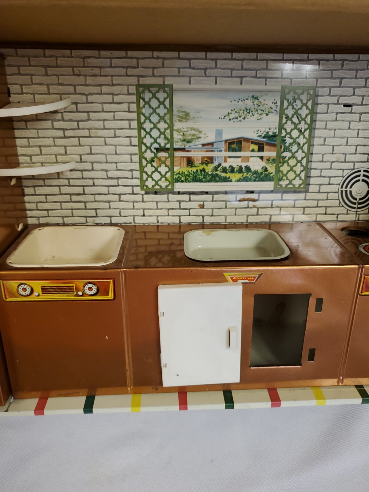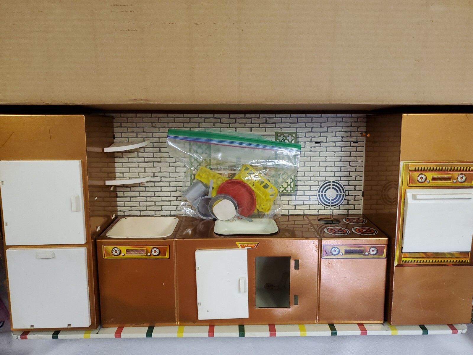 как выглядит Vintage 1960 s T. Cohn Modern Coppertone Kitchen 680 SUPERIOR TOYS w Dishes/Box фото