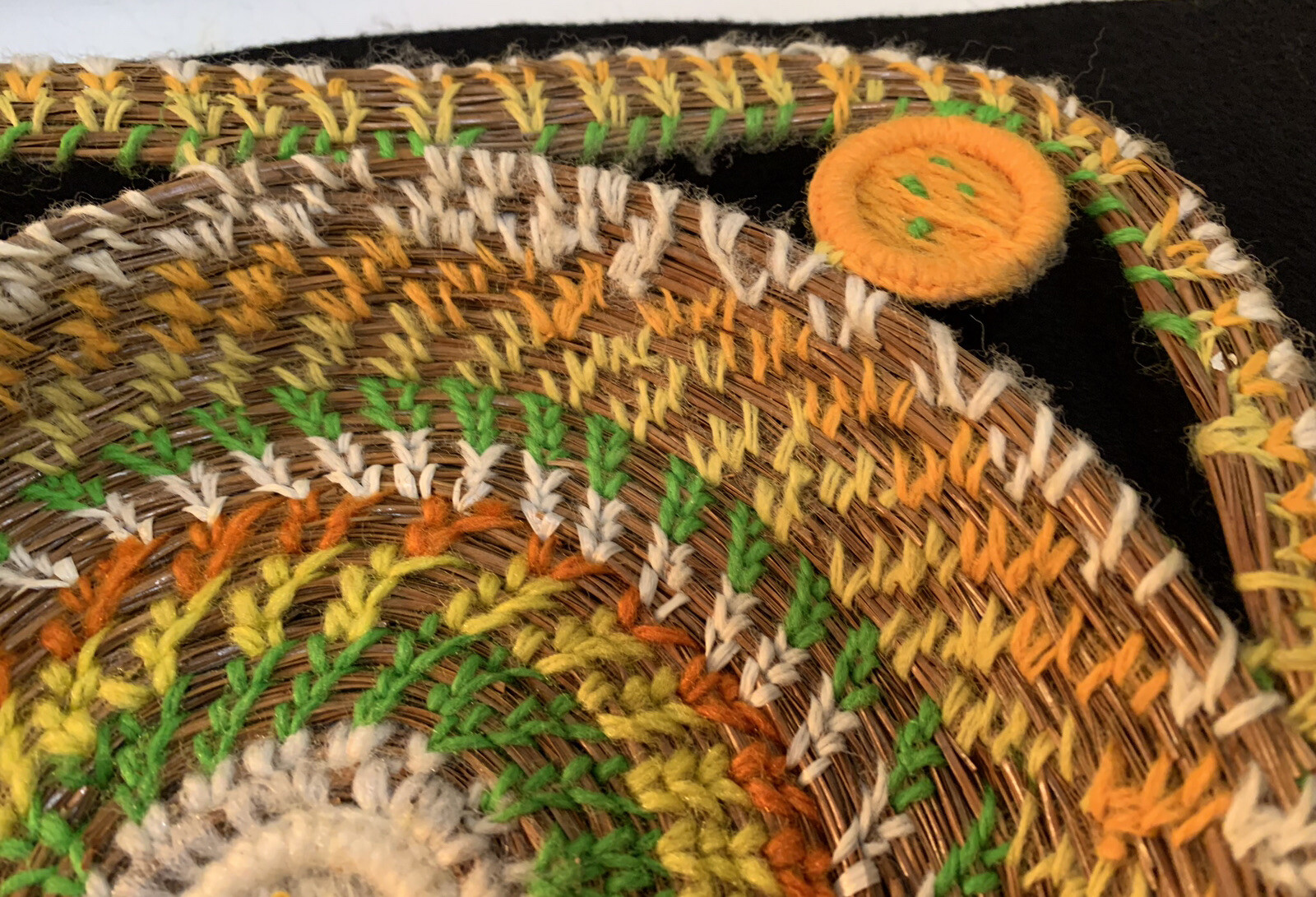 как выглядит Basket Yellow Orange Green Yarn and Pine Needles Round Square 1 High 9 1/4 фото