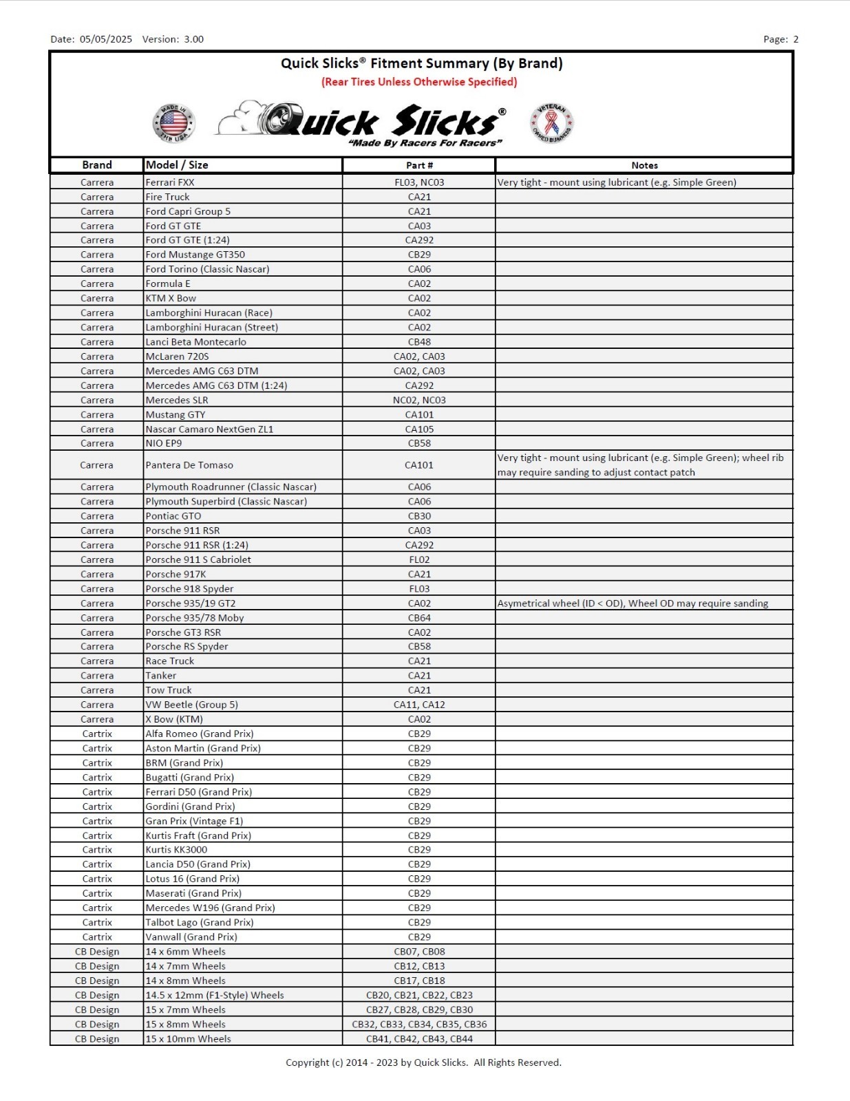 QUICKSLICKS FL02XF SILICONE TIRES FOR FLY 1/32 SLOT CARS BMW, CORVETTE,CARRERA