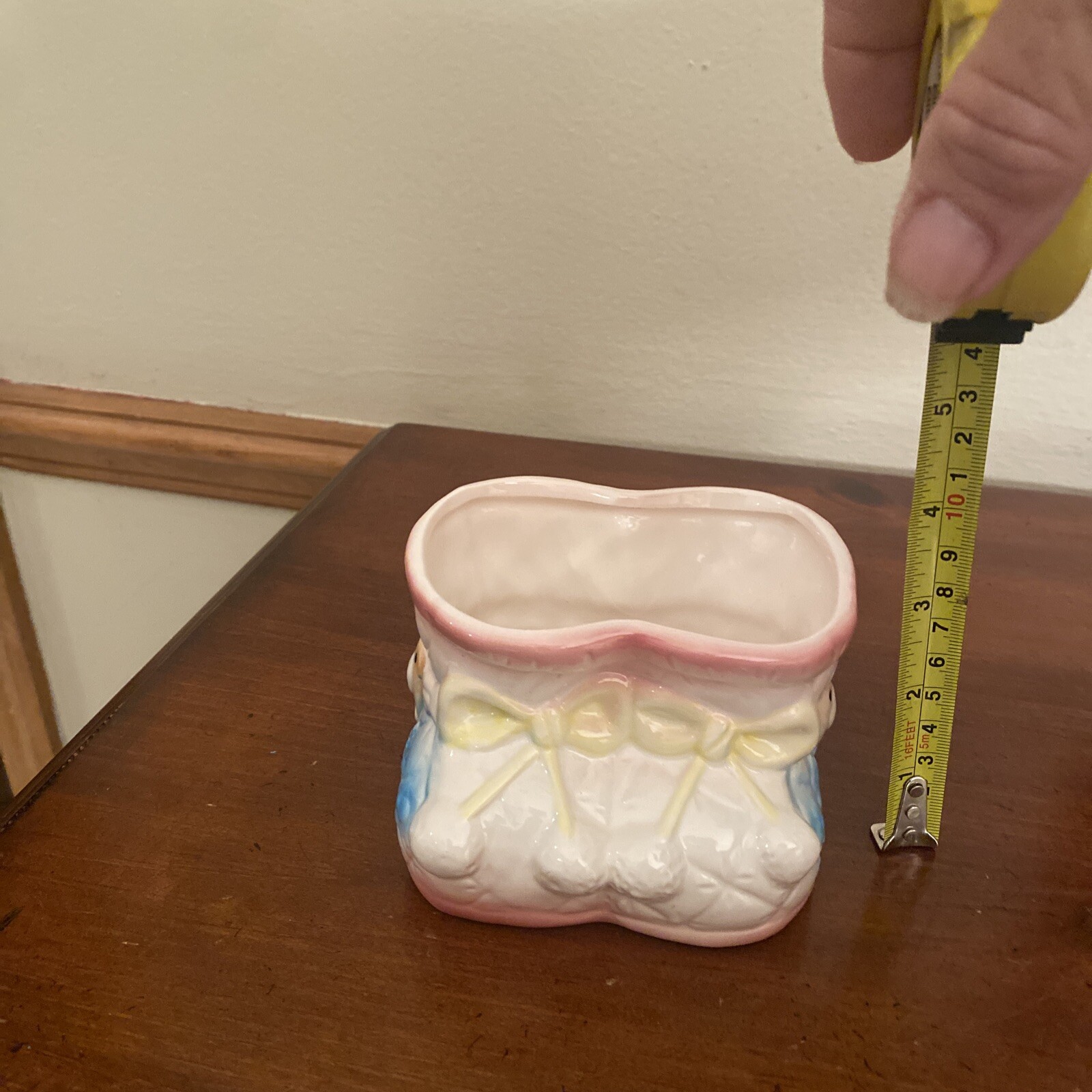 как выглядит Baby Booties Ceramic Pink Nursery Planter Vintage Bears фото