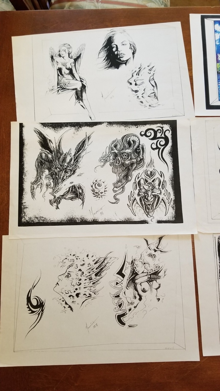 как выглядит Mauricio Tattoo Flash 12 Sheets 1990s Vtg Color B/W Skulls Nude Faces Brasil фото
