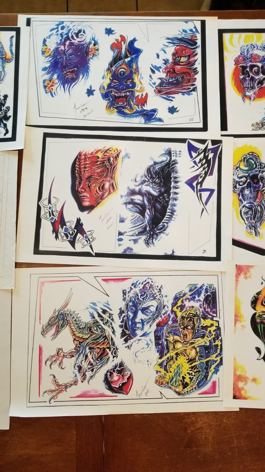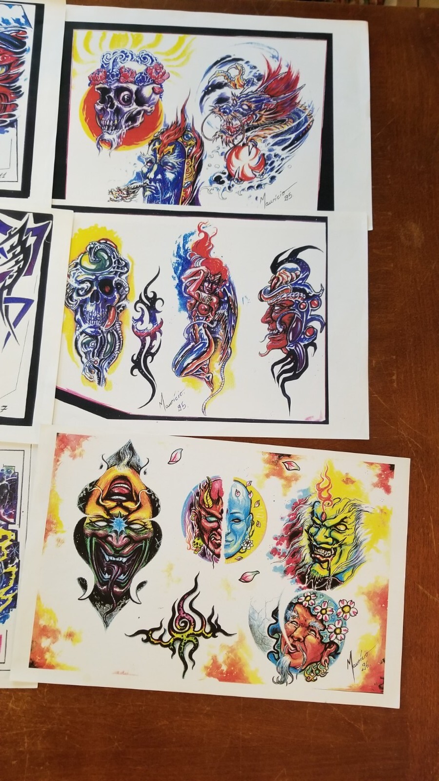 Mauricio Tattoo Flash 12 Sheets 1990s Vtg Color B/W Skulls Nude Faces Brasil