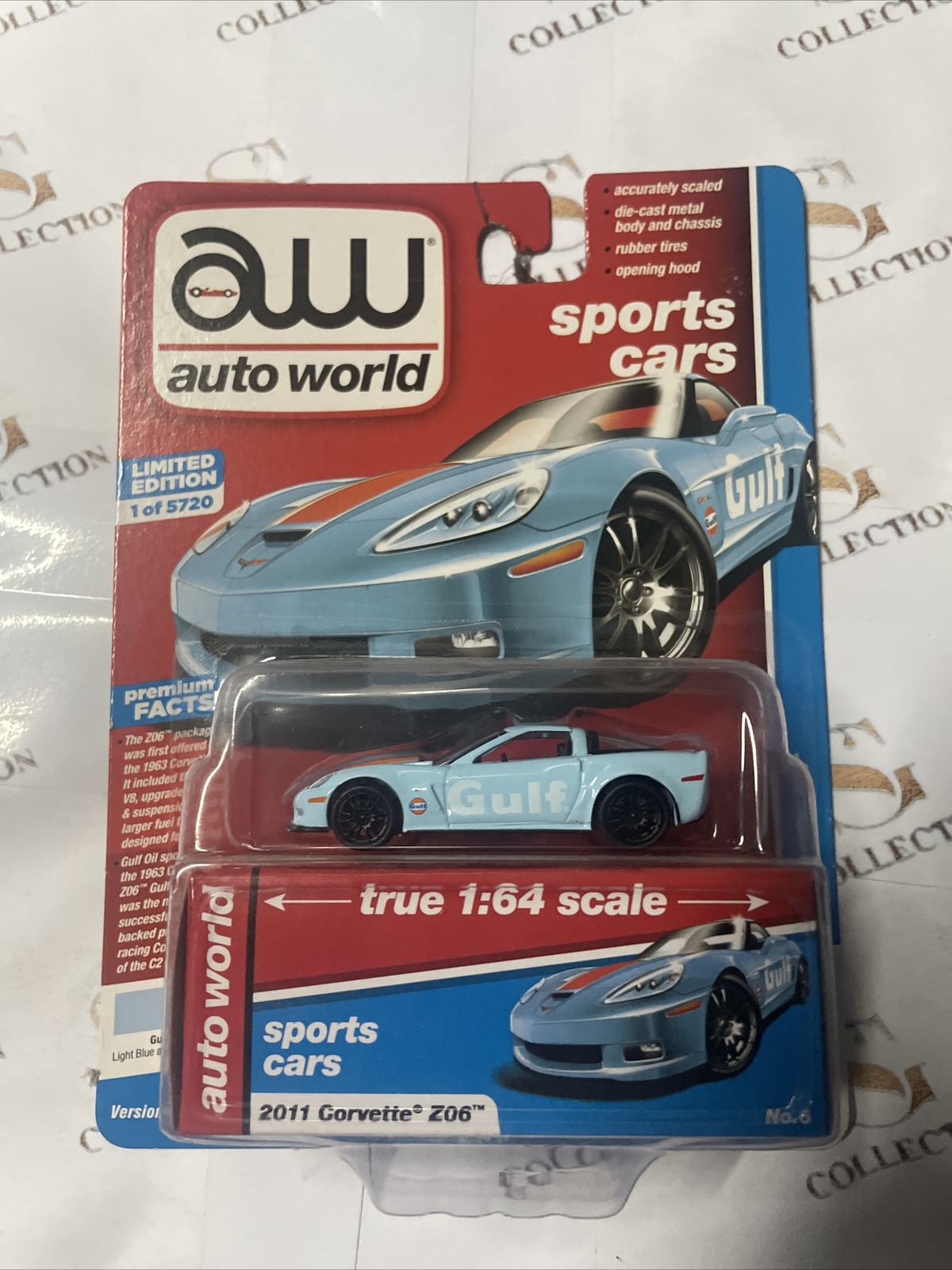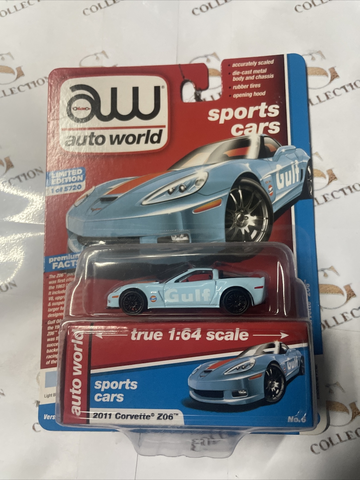 Auto World 1:64 Sports Cars - 2011 Chevy Corvette Z06 Gulf - Light Blue