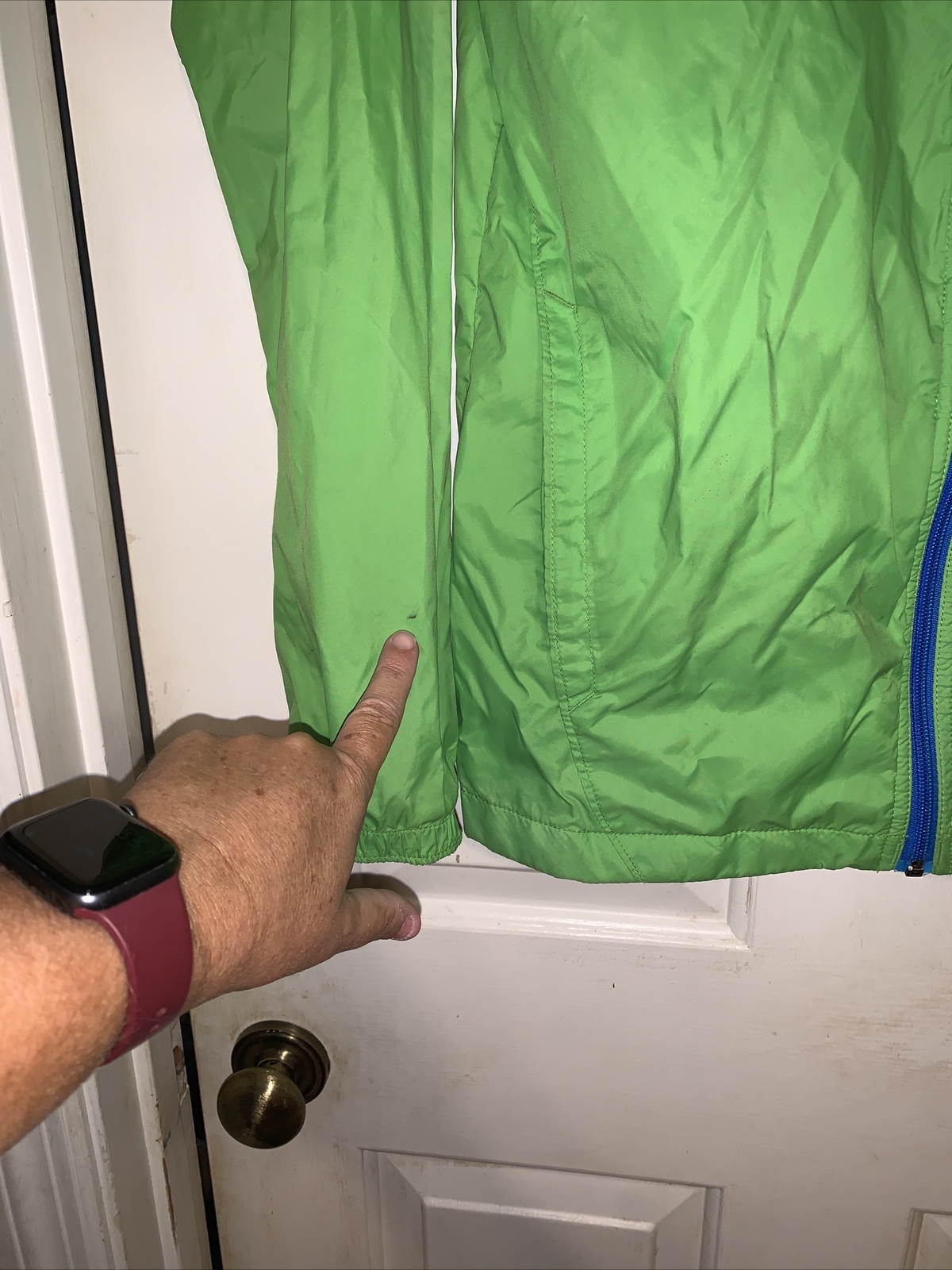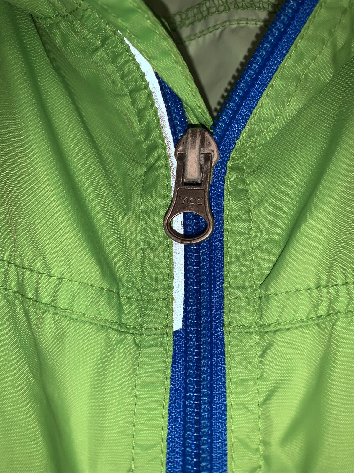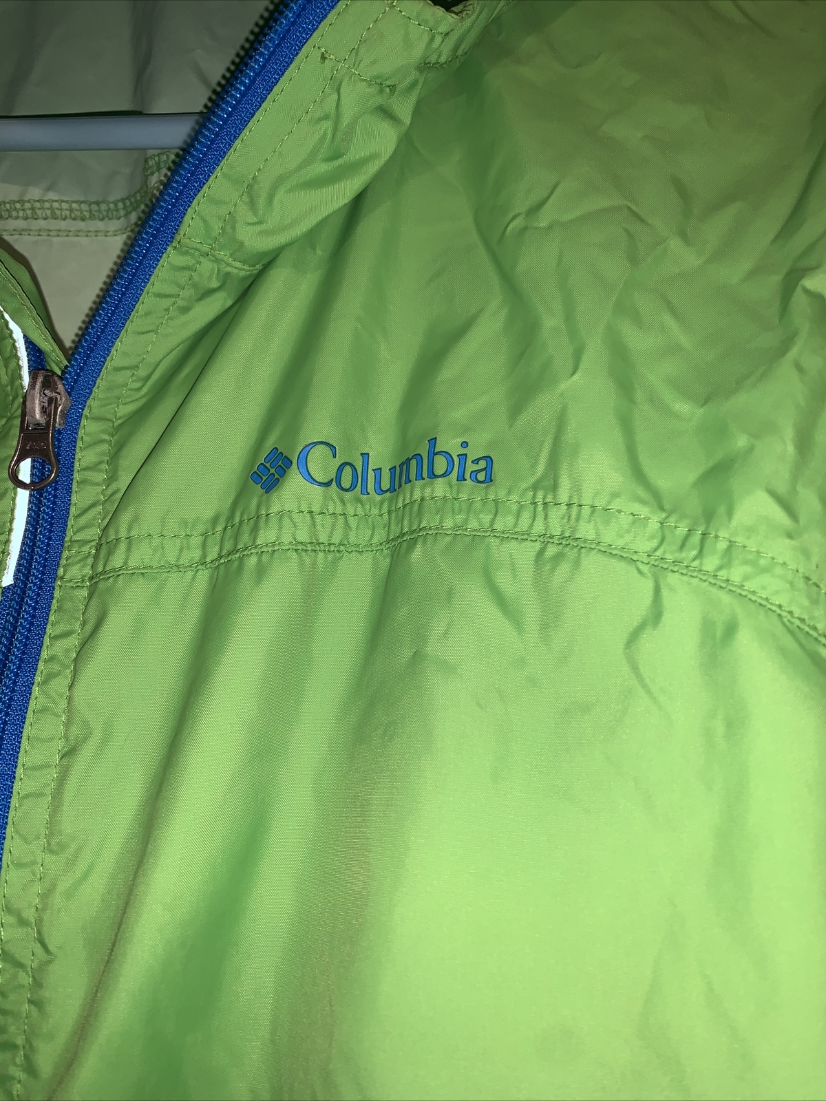 Kids Extra Large Columbia Rain Jacket Green With A Trim A Blue