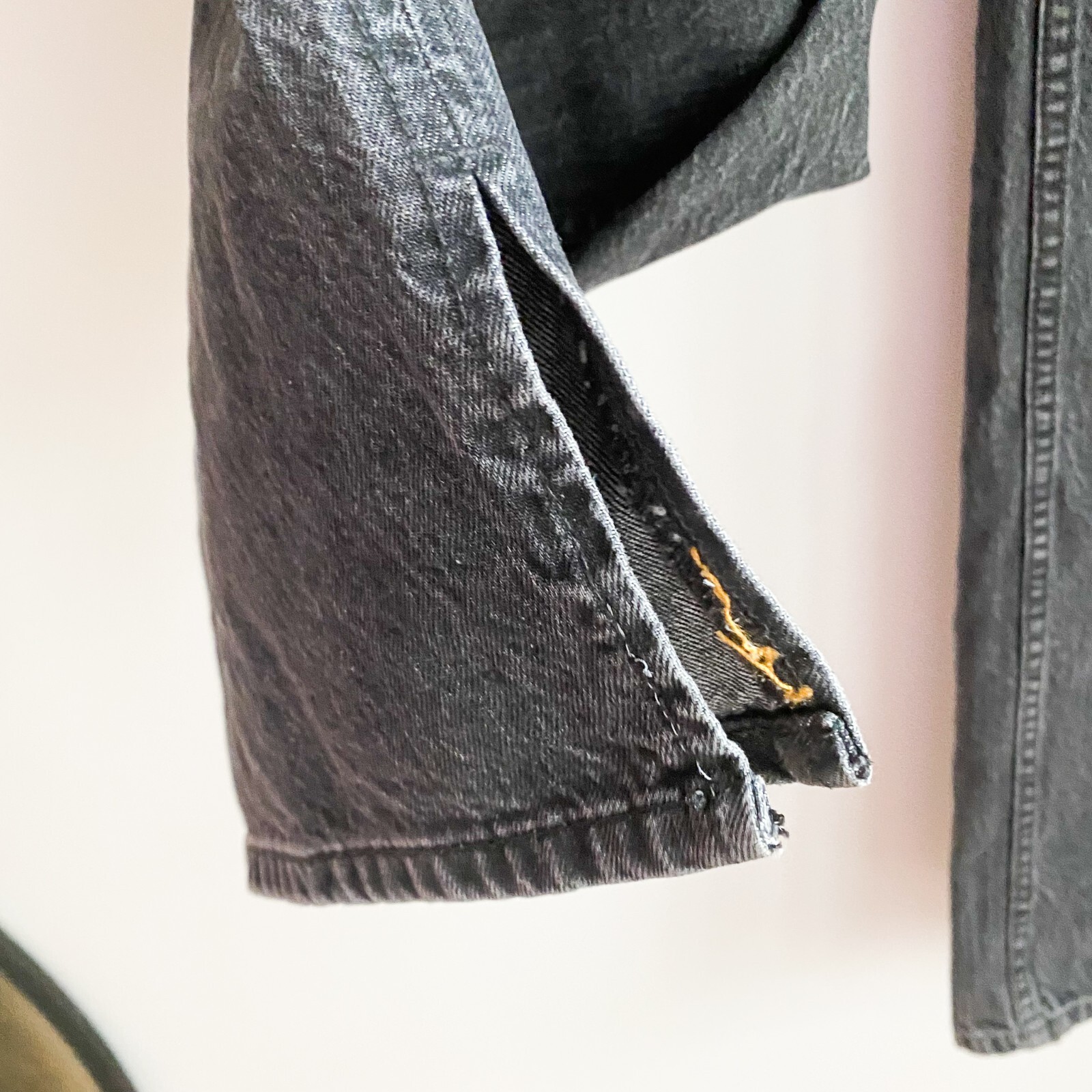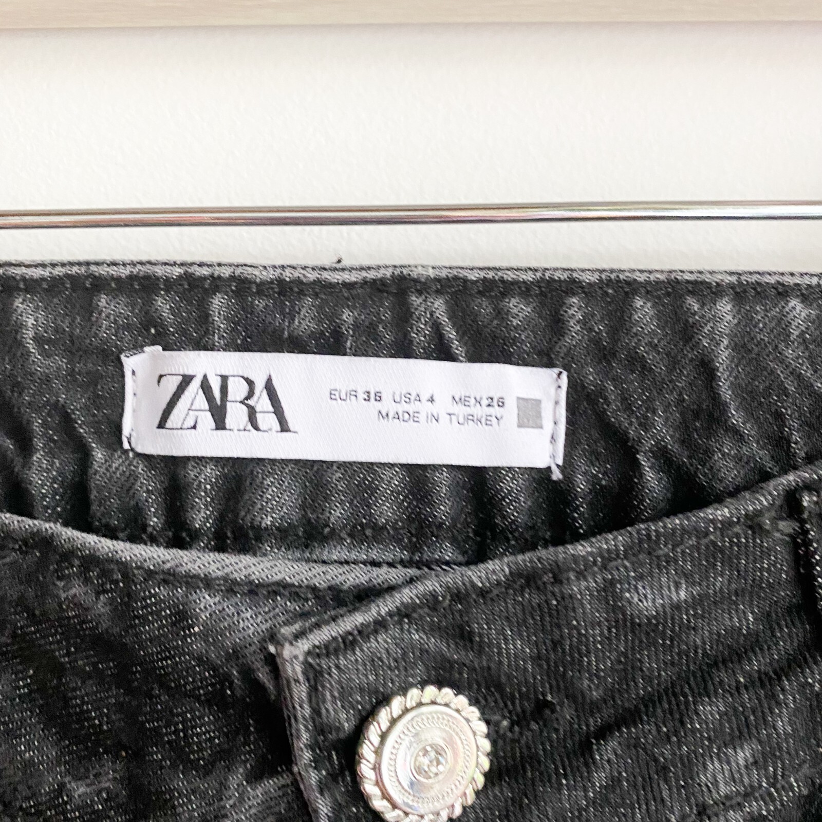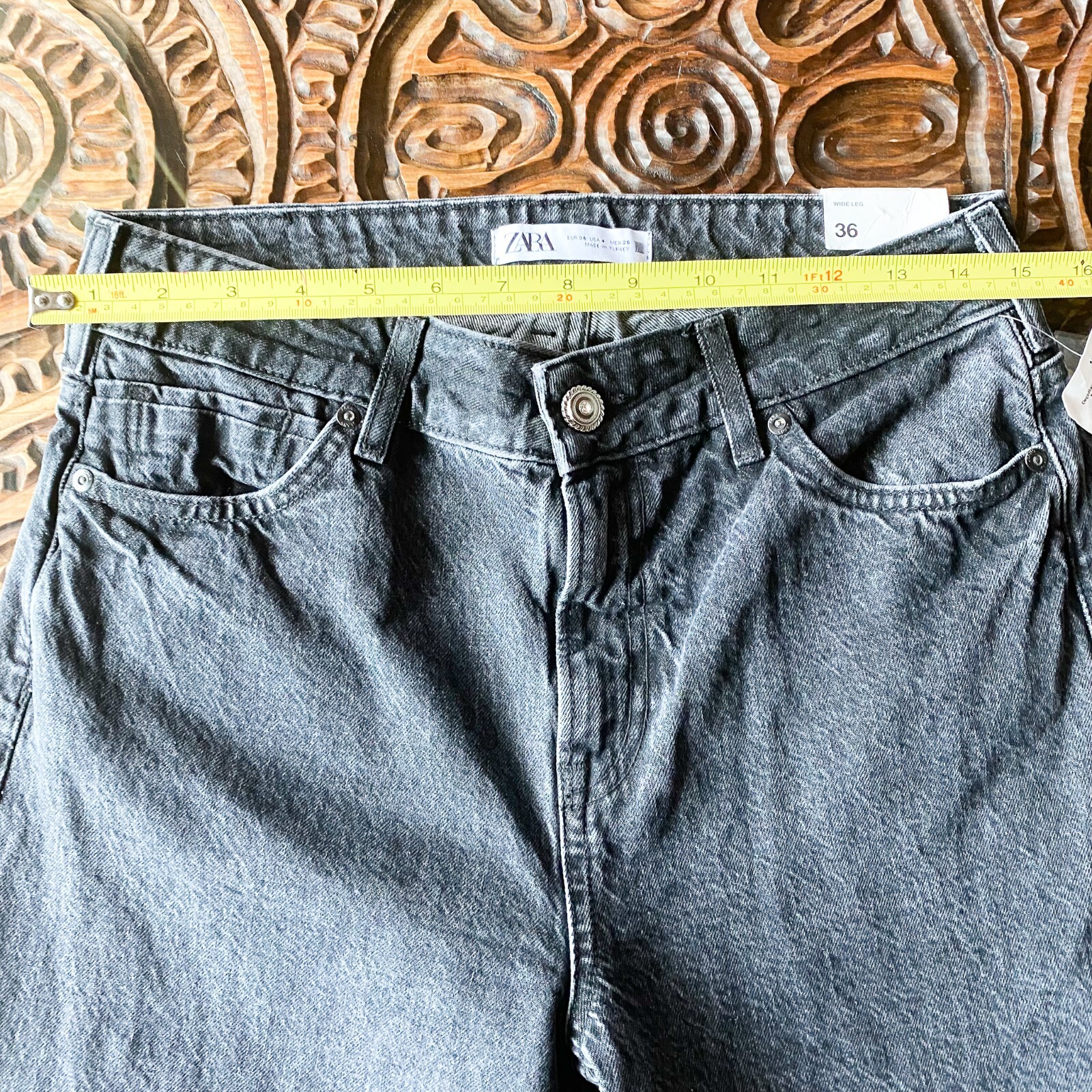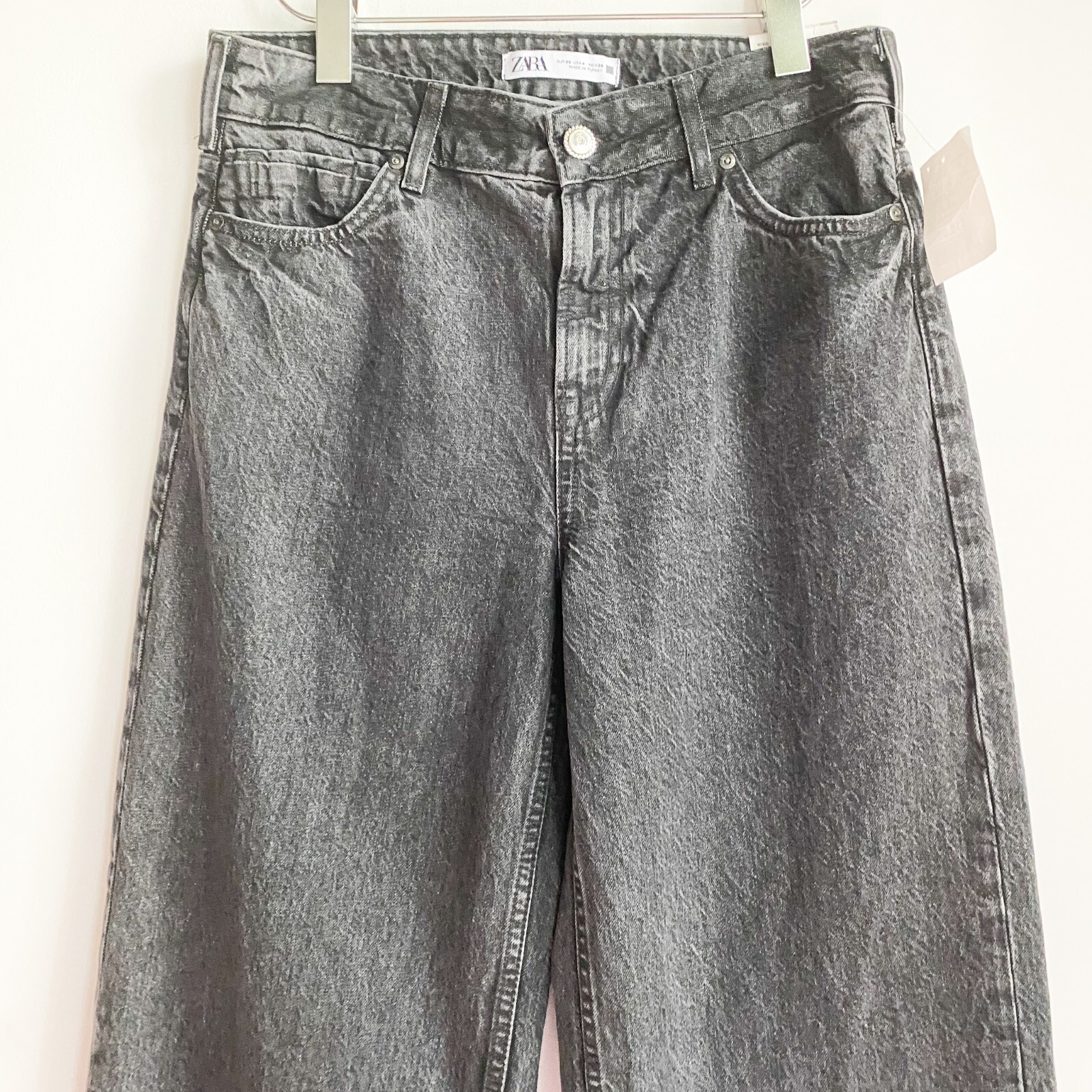 как выглядит NWT Zara Black Wash Denim Wide Leg High Waist Jeans w Ankle Slits 4 фото