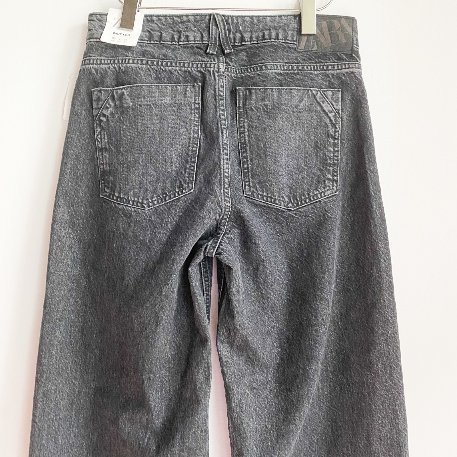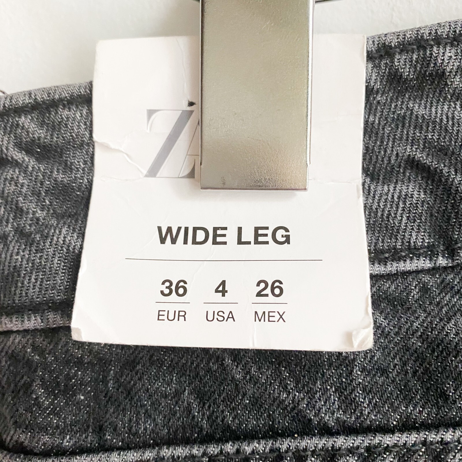 NWT Zara Black Wash Denim Wide Leg High Waist Jeans w Ankle Slits 4