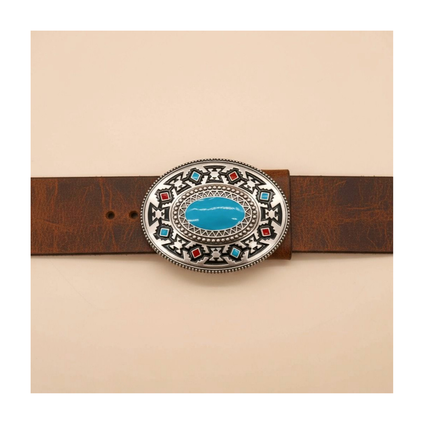как выглядит Men Women Buckle Silver Metal Western Fashion Turquoise Blue Ethnic Bohemian фото