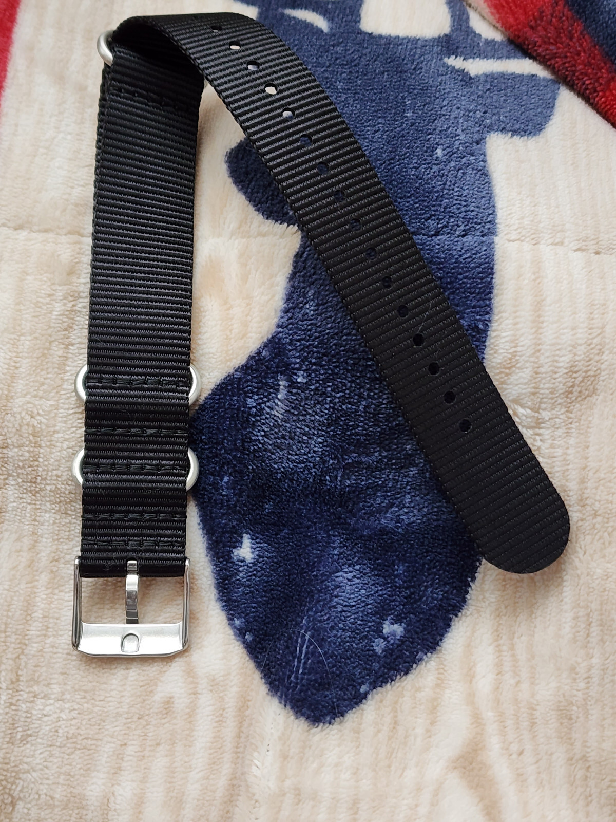 22mm Black Luminox 3 SOLID Stainless Steel Rings, Buckle Nylon Watch Band Strap