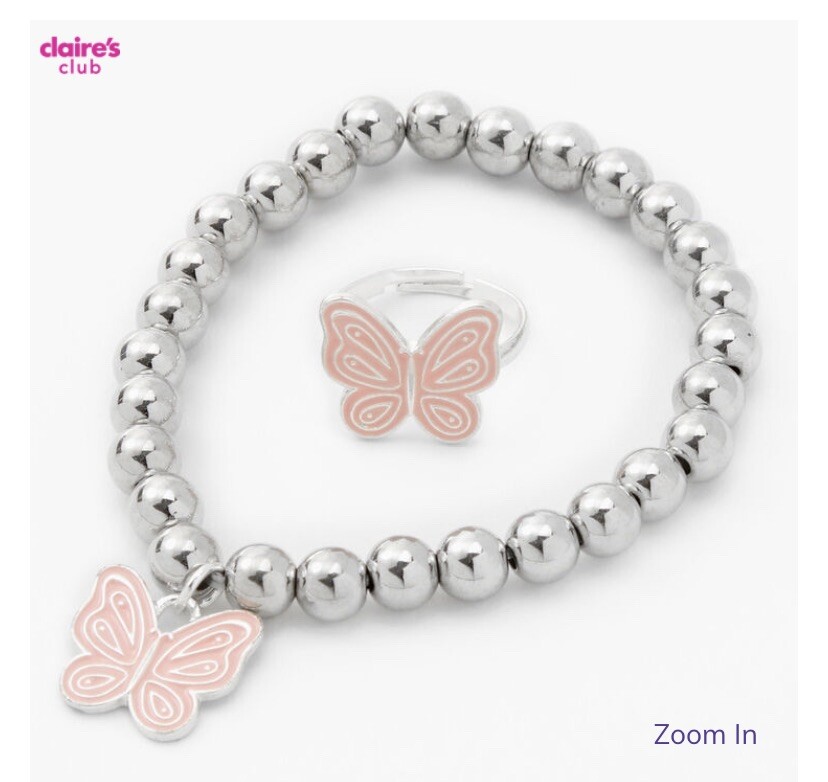 Claire s Club Pink Peach Butterfly Necklace Bracelet Ring Birthday Set