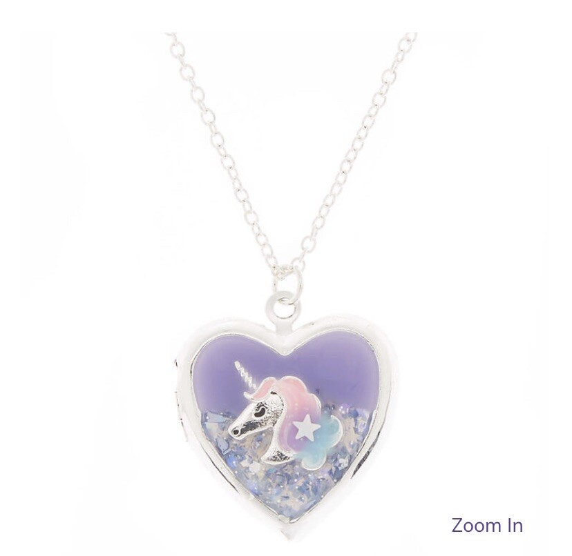 как выглядит Claire s Light Purple Unicorn Glitter Silver Locket Necklace Birthday Christmas фото