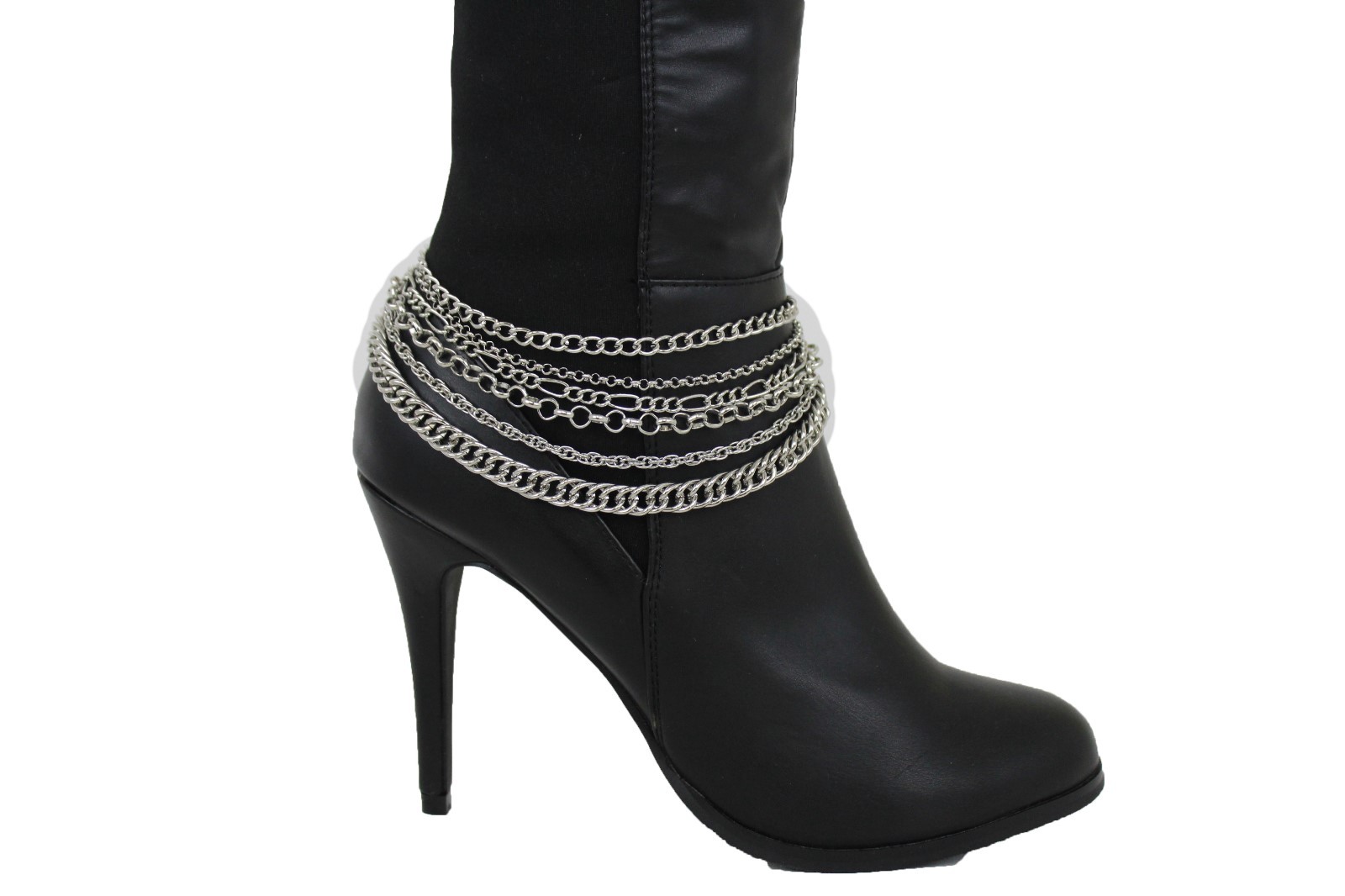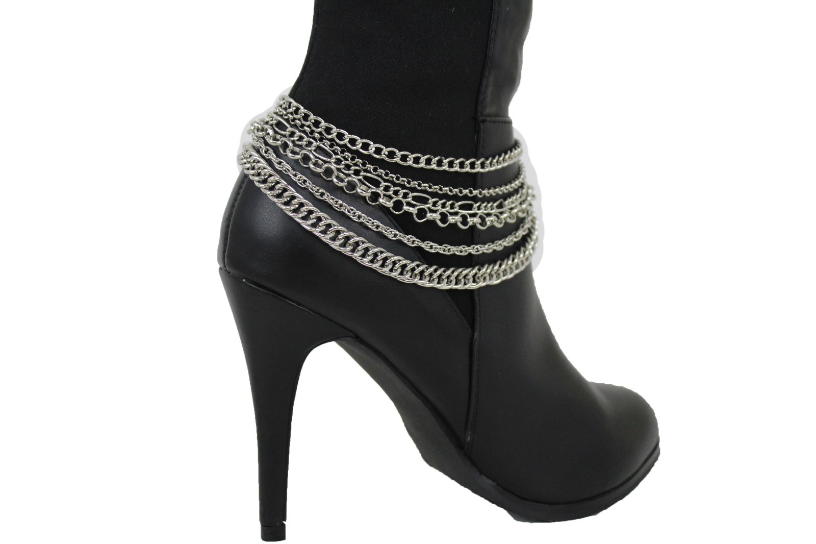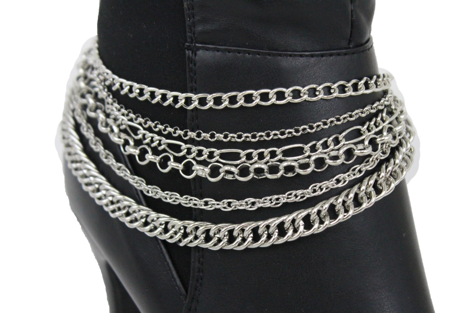 Women Boot Bracelets Silver Color Metal Chain Multi Links Strand Anklet Shoe SET