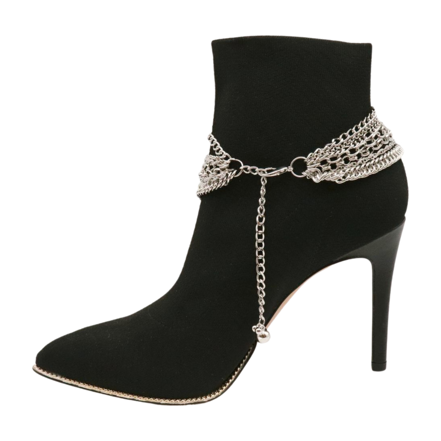 Women Boot Bracelet Silver Metal Chain Shoe Charm Multi Strand Cowgirl 2PCS PAIR