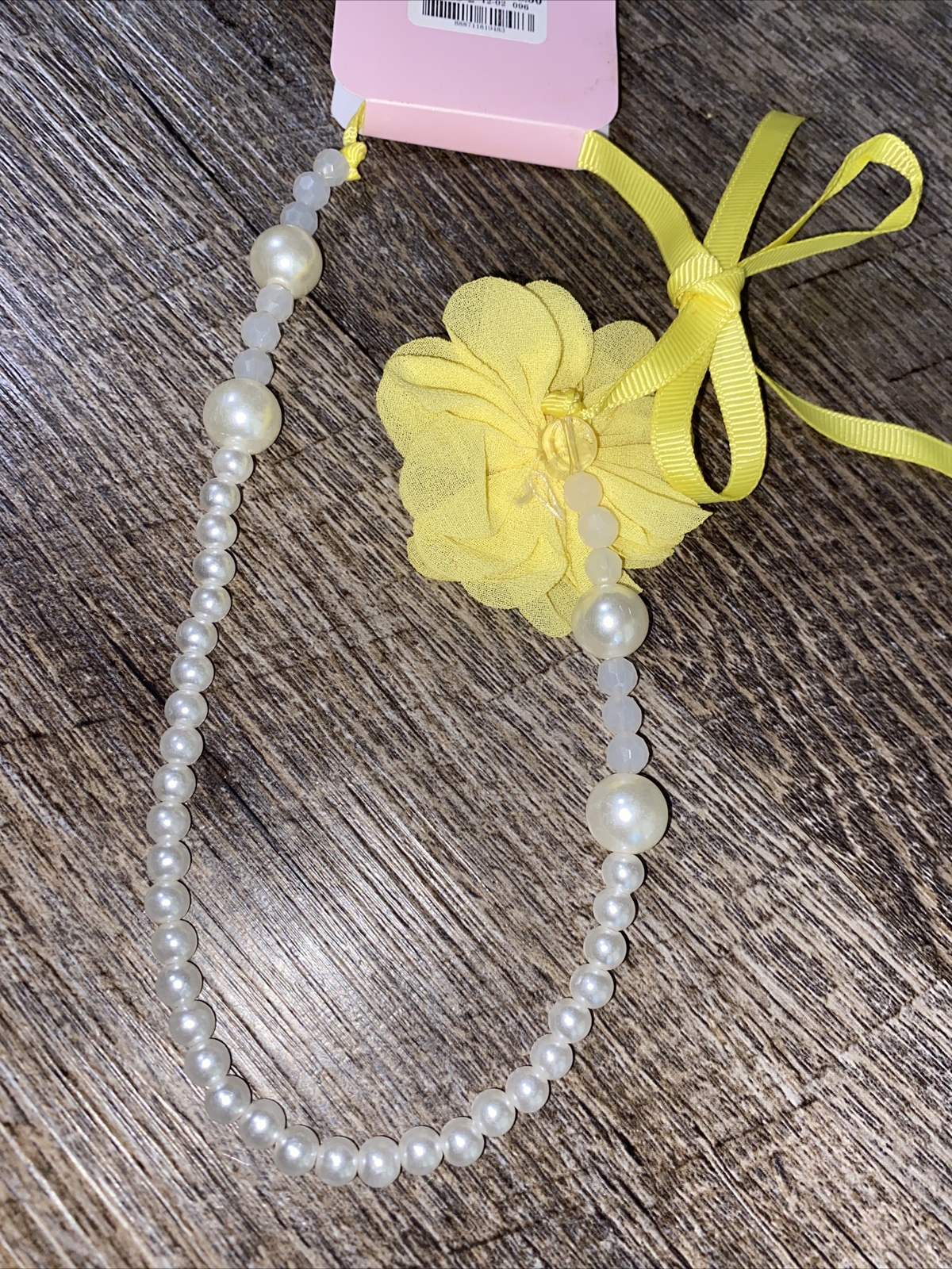 Claire s rhinestone Yellow tulle flower pearl beaded little girls necklace