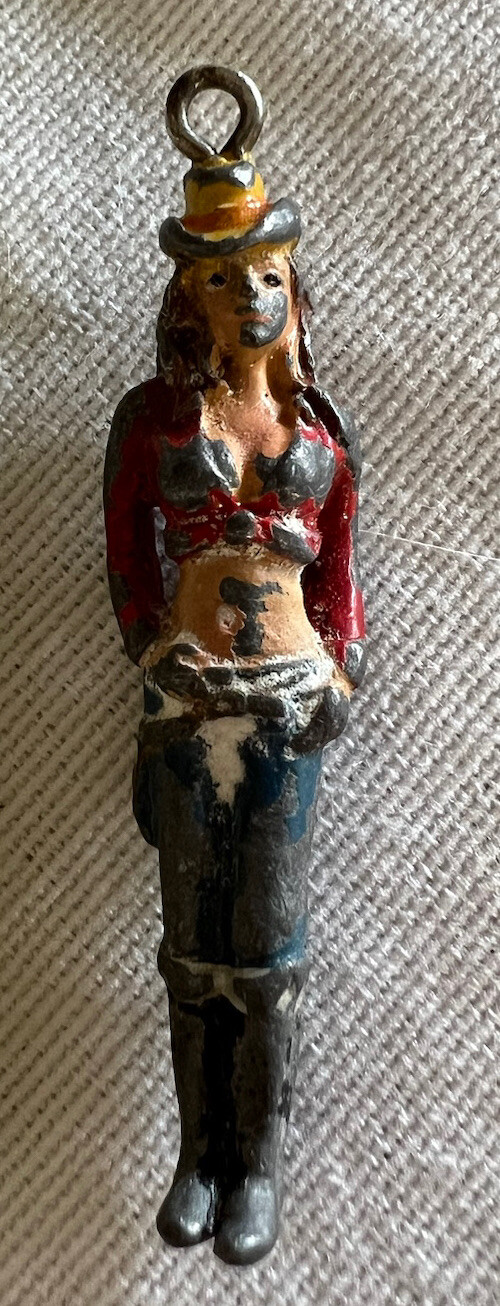 Vintage Cowgirl Painted 2 Metal Figure Pendant