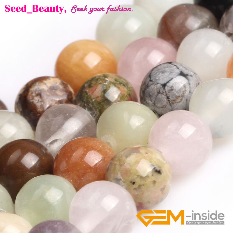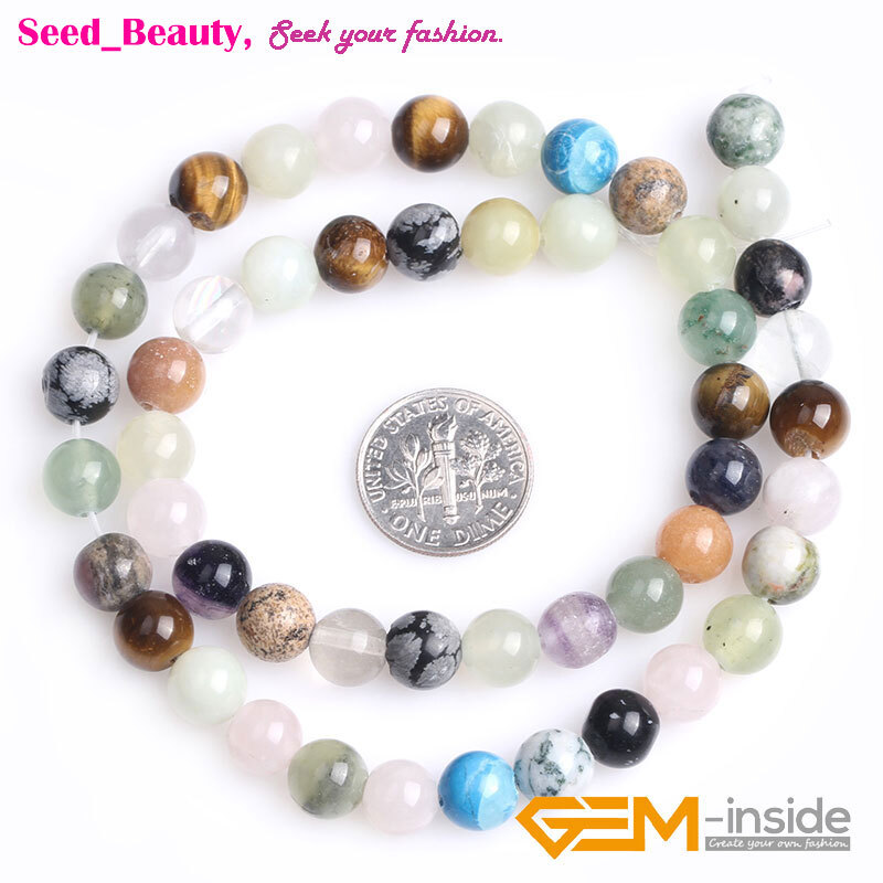 Round Mixed Gemstone Assorted Stone Beads For Jewelry Making Strand 15 DIY 8mm