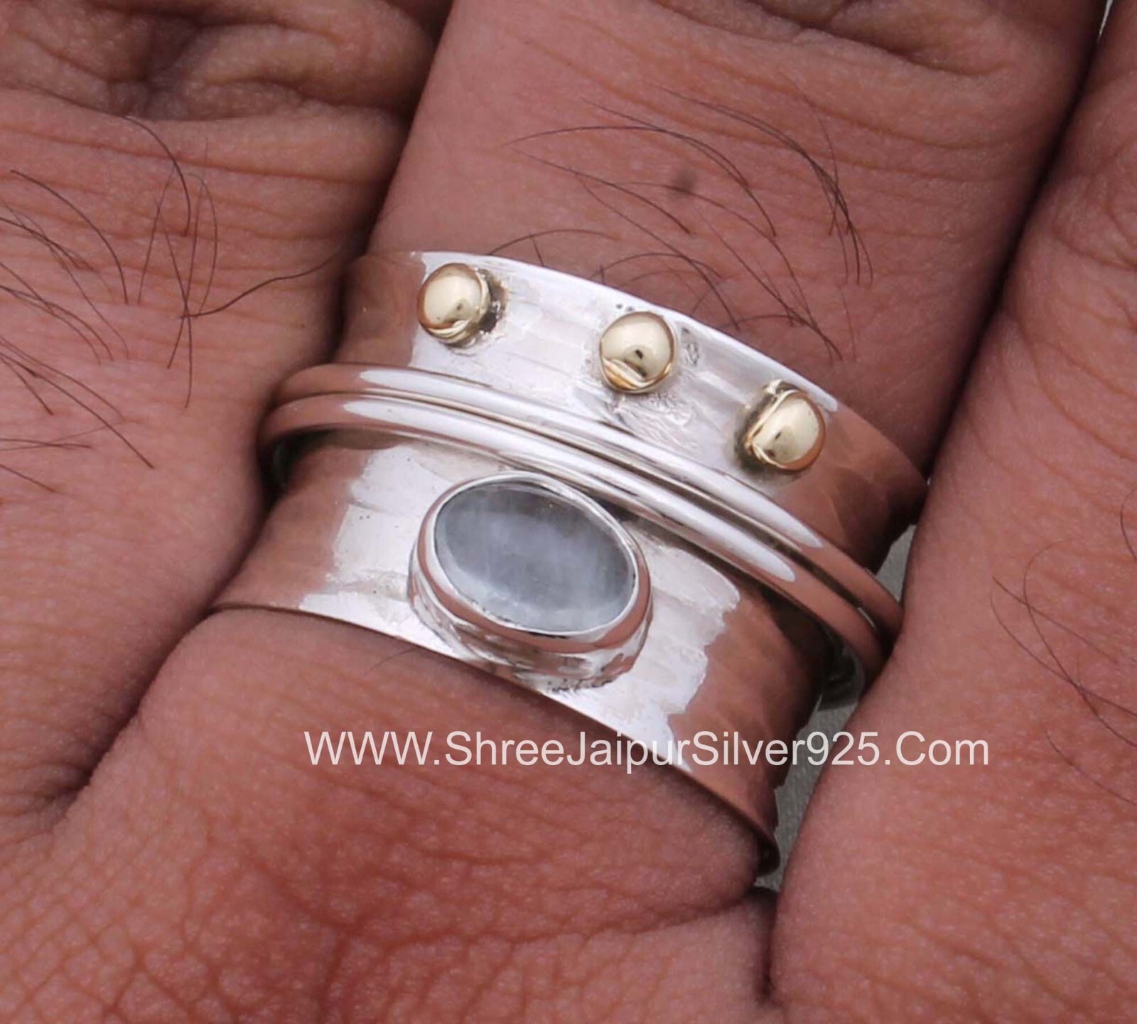 Aquamarine Rings Stelring Silver Spinner Ring-Natural Aquamarine Spinner Rings