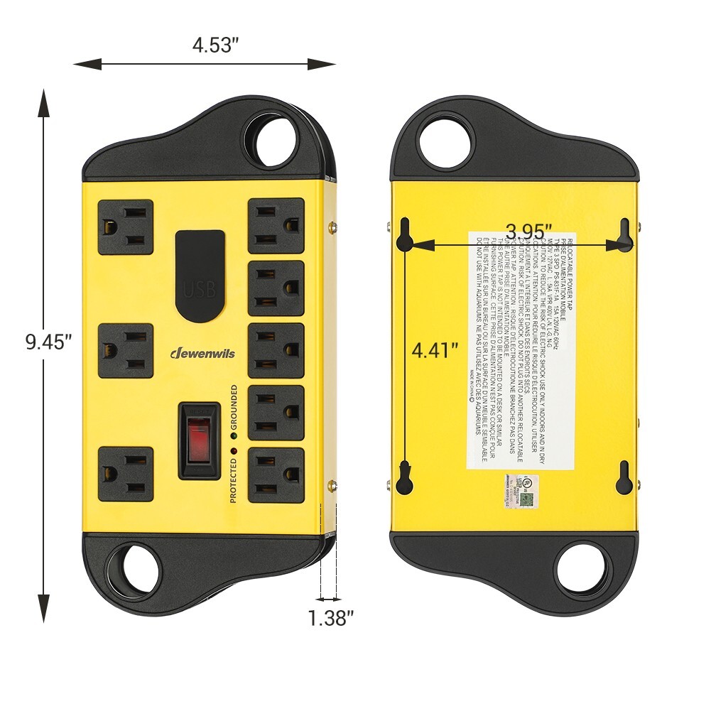 как выглядит DEWENWILS 8 Outlet Power Strip Surge Protector With 2 USB Port Heavy Duty 15FT фото