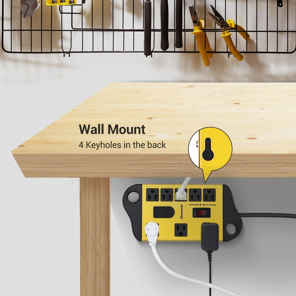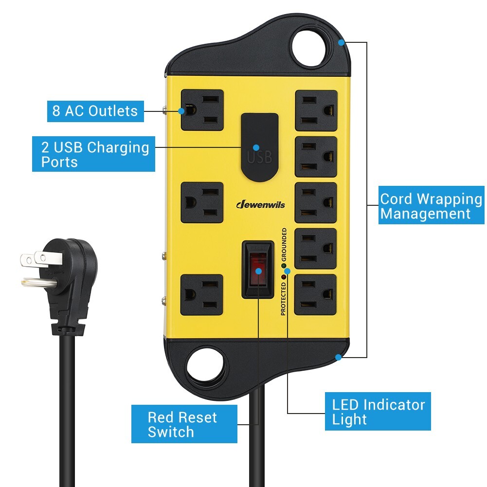 DEWENWILS 8 Outlet Power Strip Surge Protector With 2 USB Port Heavy Duty 15FT