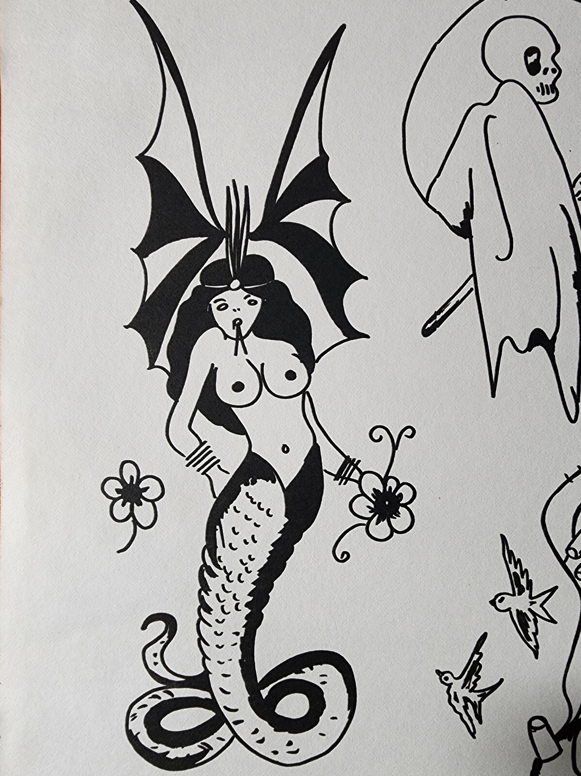 как выглядит Rare 1960s Original Tom Pellettiere Milton Zeis Vintage Tattoo Flash Sheet TP18 фото