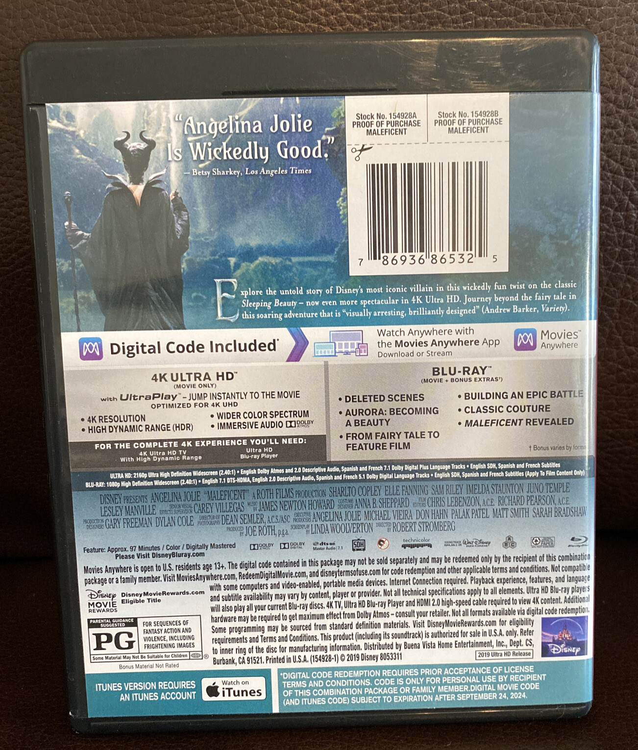 Maleficent Disney 4K Ultra HD, Blu-Ray NO Digital Code Ultimate Collector s Ed