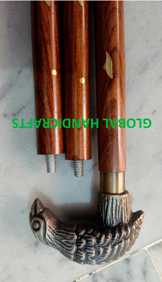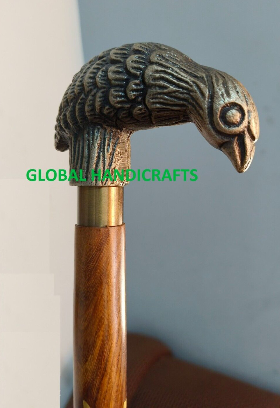 Nautical Designer Antique bird Handle Brass Inlay Brown Walking Stick
