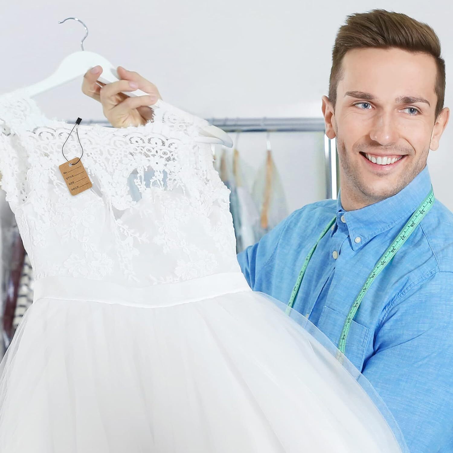 как выглядит 500 Kraft Brown Price Tags With Strings For Clothing Jewelry And Toy Displays фото