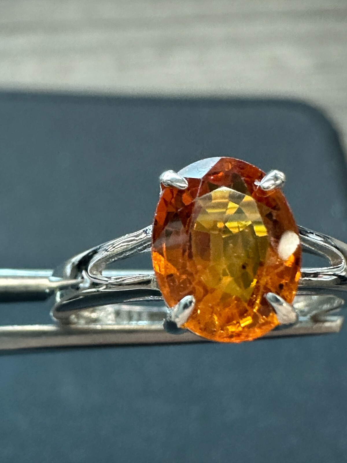 как выглядит Sapphire natural orange color 2ct oval shape in sterling silver ring фото