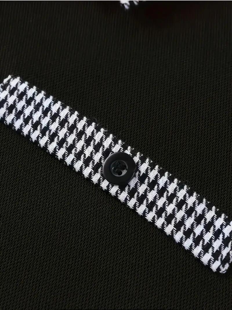 как выглядит Polo T Shirts Button Up Collar Solid Black White Plaid Trim Golf Long Sleeve Tee фото