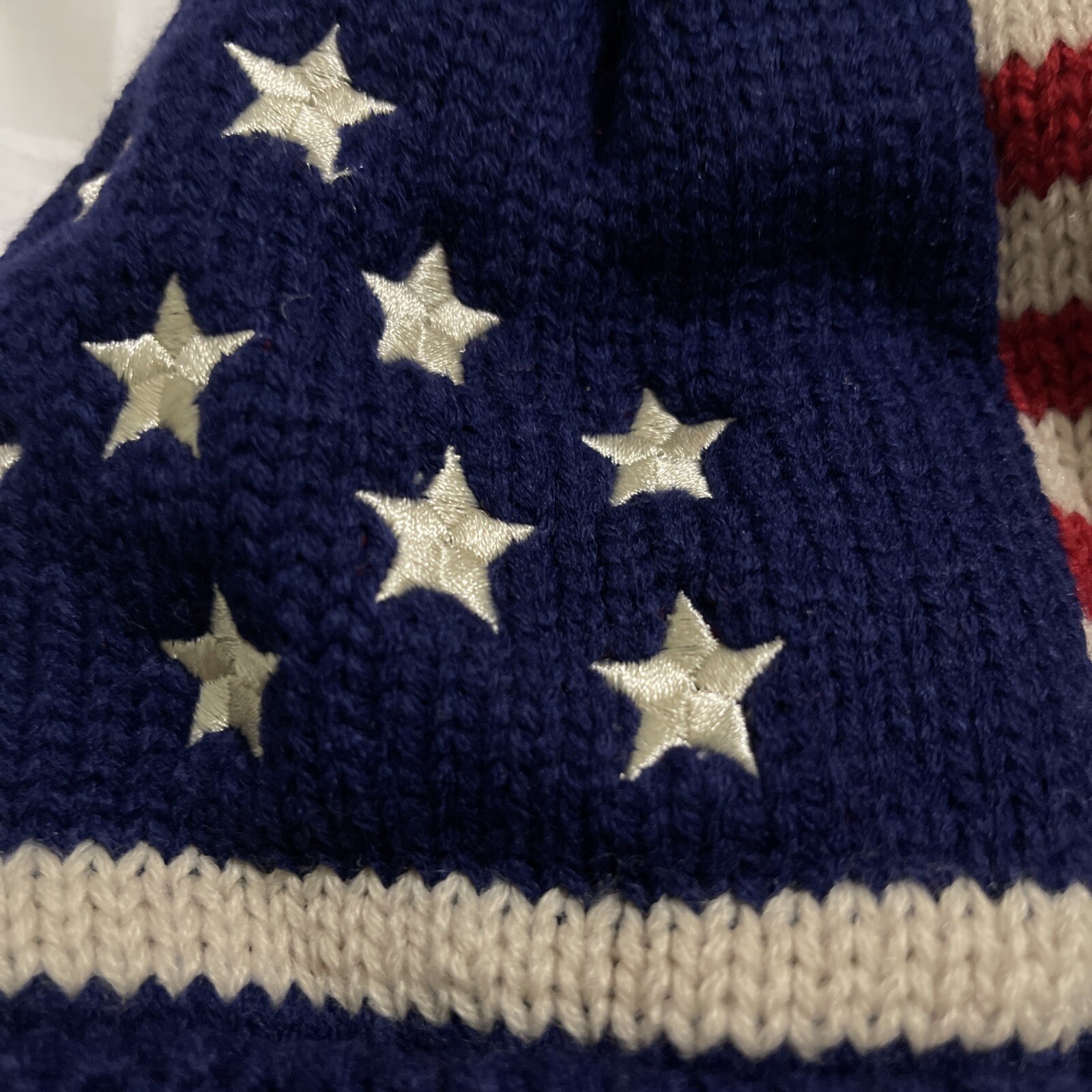 как выглядит Winter Hat American Flag Patriotic Stars Men s Women s Warm Pom Pom Navy Blue фото