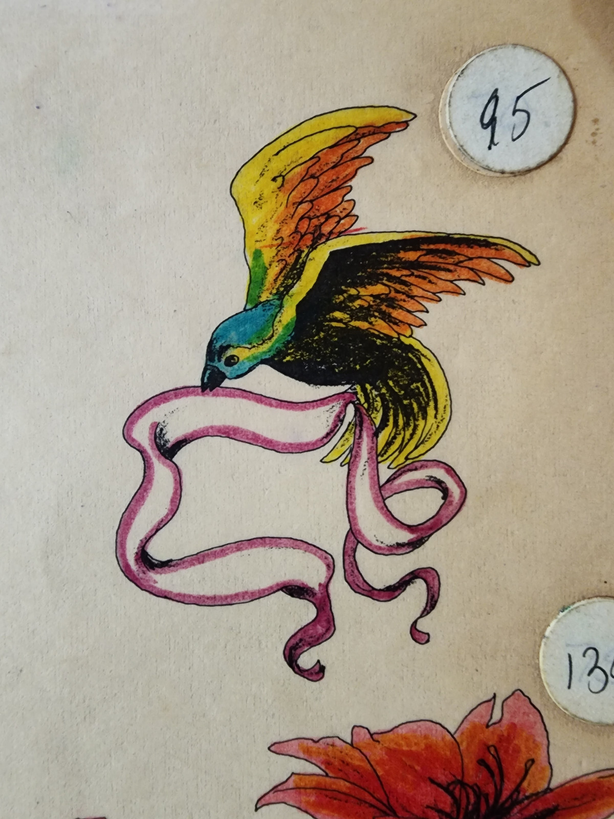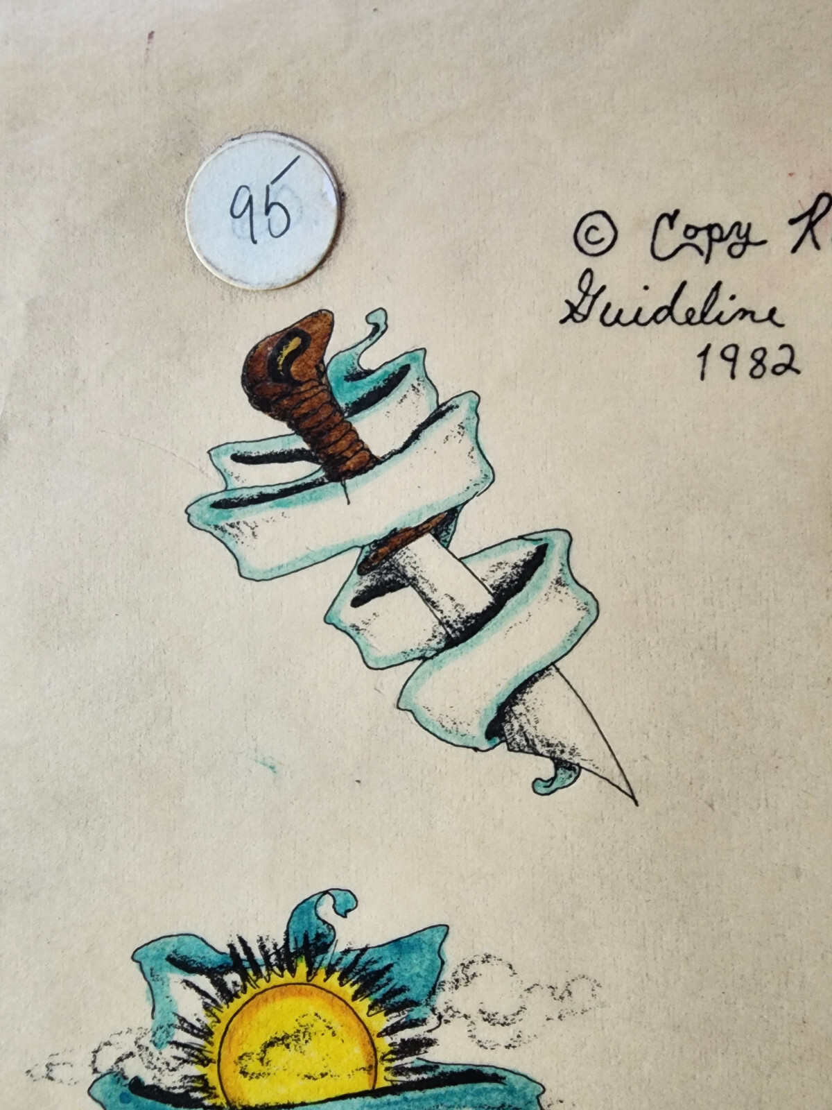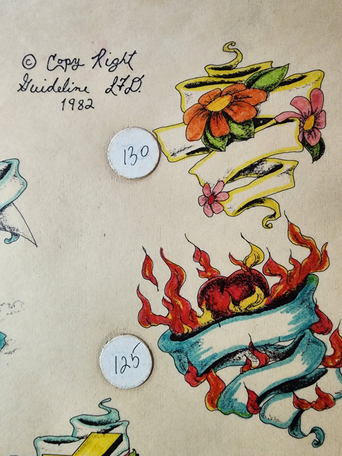 как выглядит Rare 1982 Guideline Tattoo Flash Production Sheet Shop Used Hand Painted фото