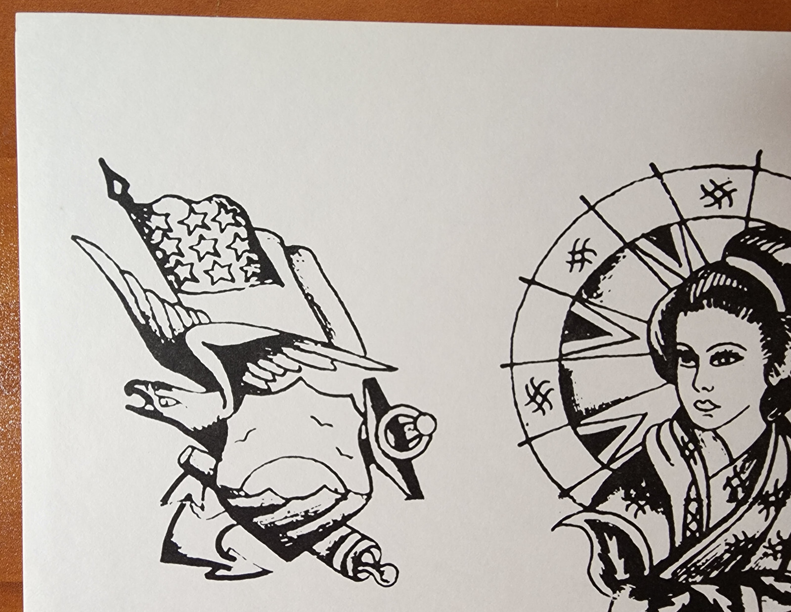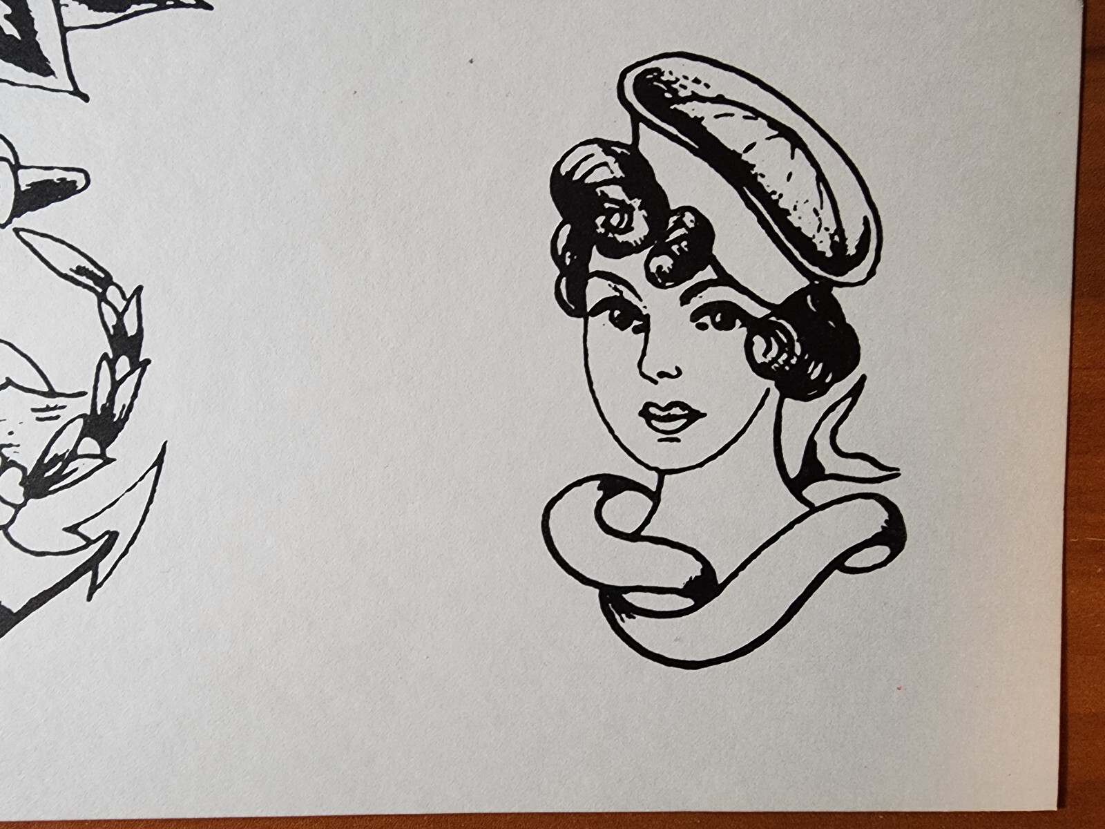 как выглядит RARE 1950s Ralph Johnstone Milton Zeis Traditional Vintage Tattoo Flash Sheet 9 фото