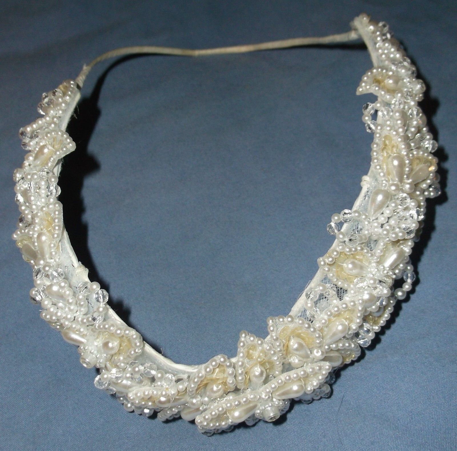 как выглядит WEDING DRESS ACCESSORY BEADED WHITE IVORY COLOR METAL SLEEVE THING USED BEADS фото