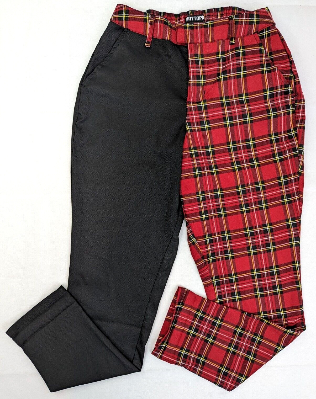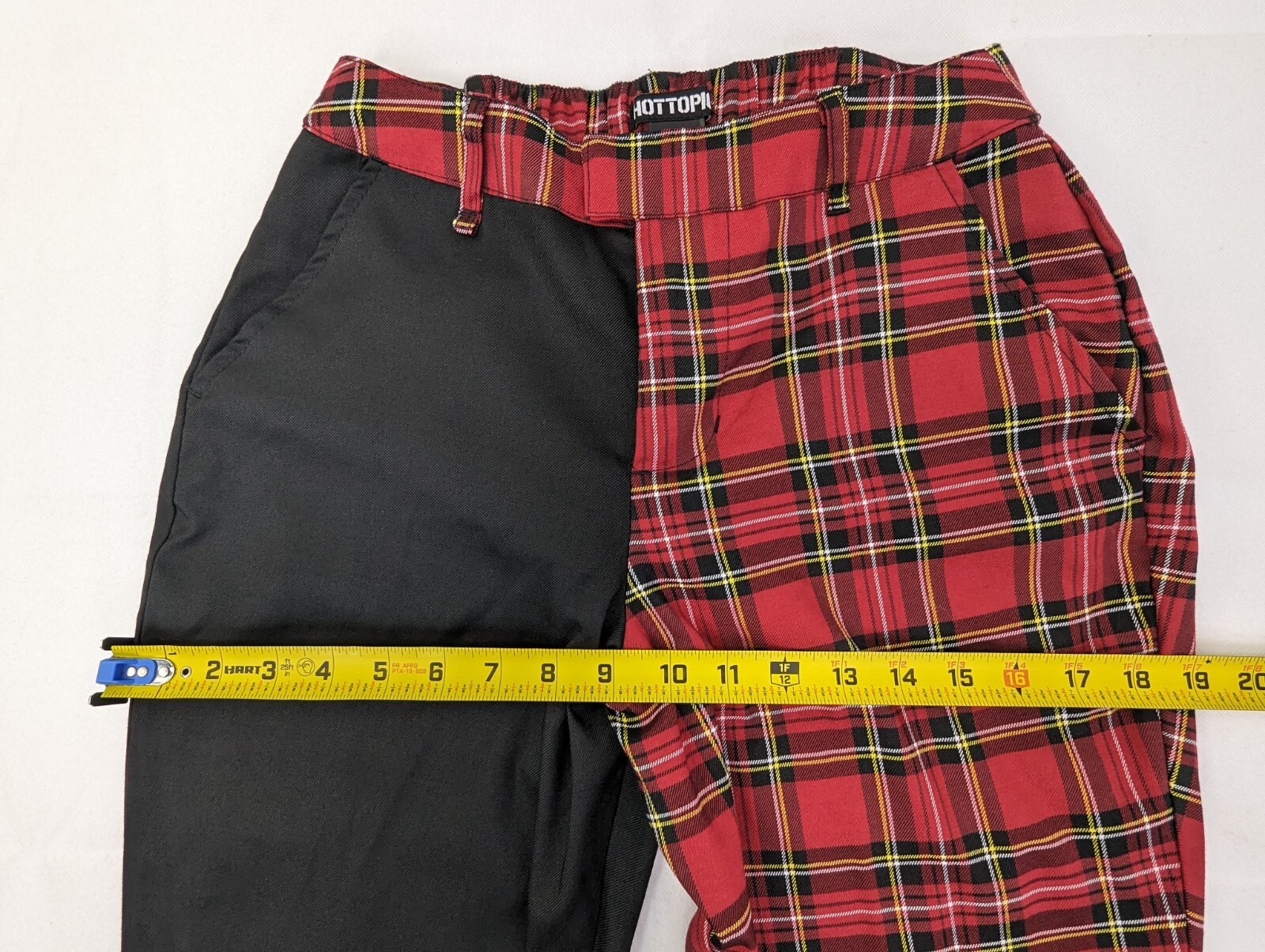 как выглядит Hot Topic Black Red Plaid Pants, Women S 24 Elastic Waist x 28 Inseam, Goth фото