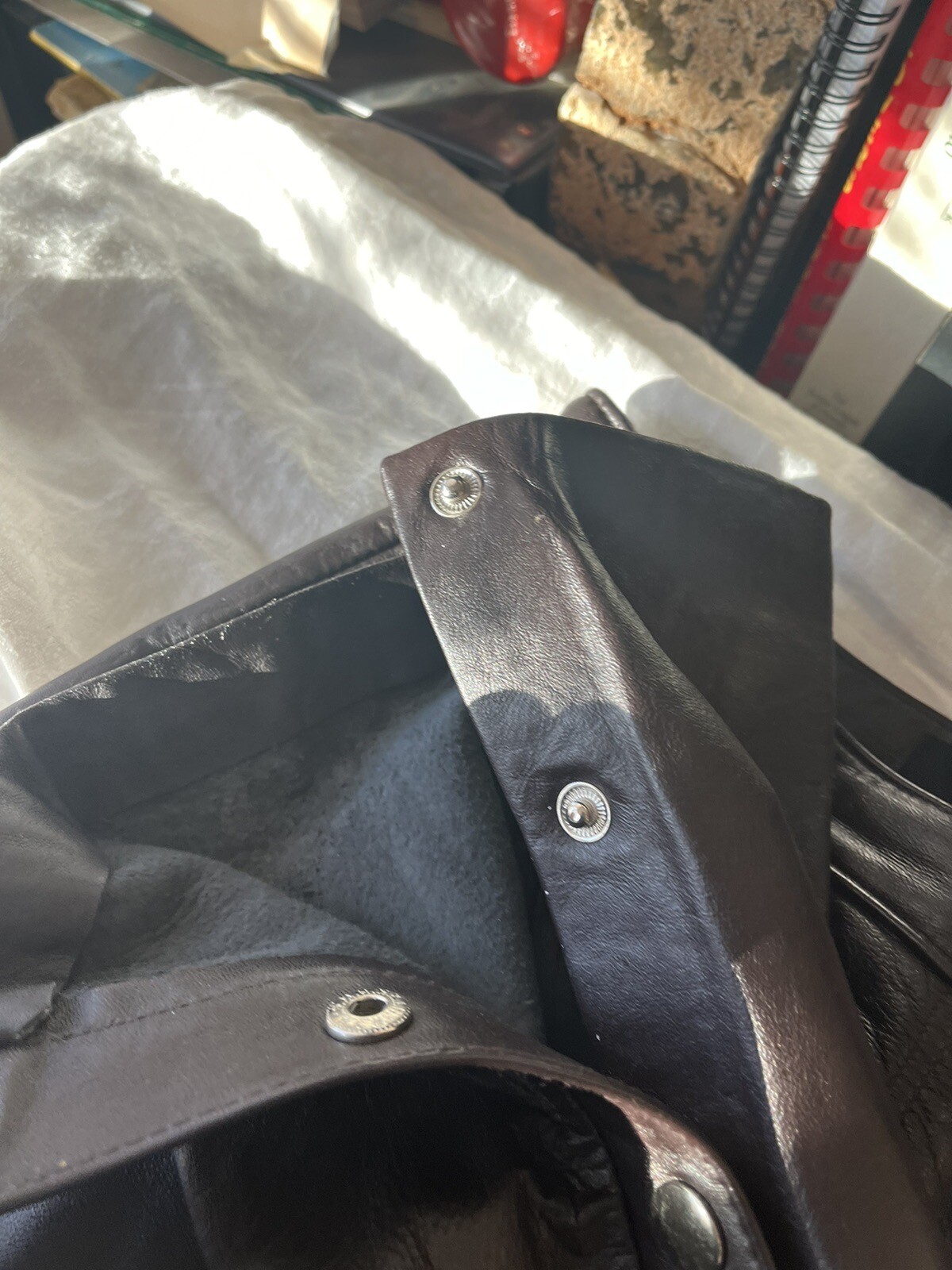 как выглядит Vintage Brown Leather Pants Side Snaps Size 8/28 фото