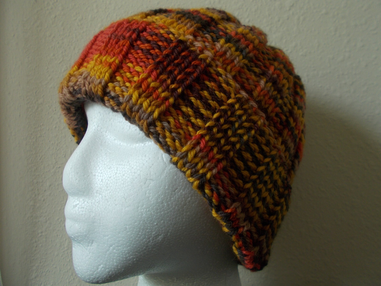 Hand knitted cozy and warm 100 wool hat, harvest tones