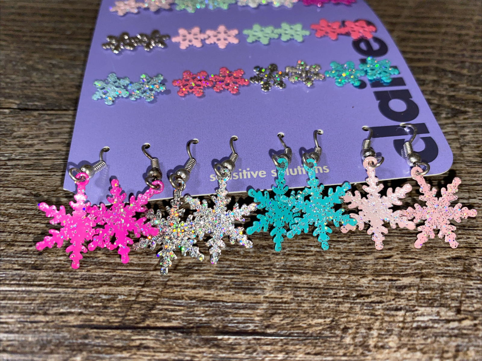 Claire s 16 Pr pink blue silver sparkle stud dangle snowflake earrings