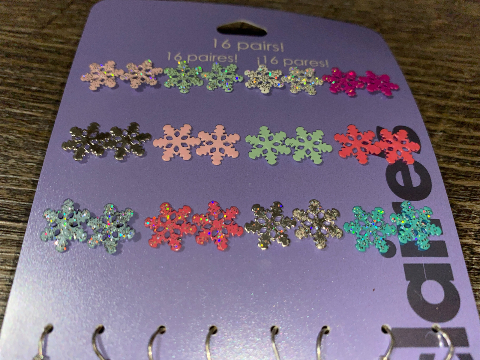 как выглядит Claire s 16 Pr pink blue silver sparkle stud dangle snowflake earrings фото